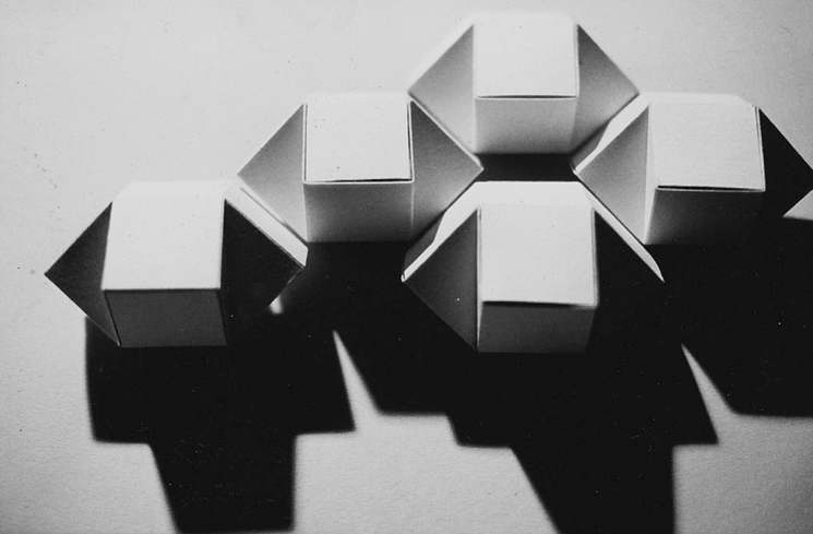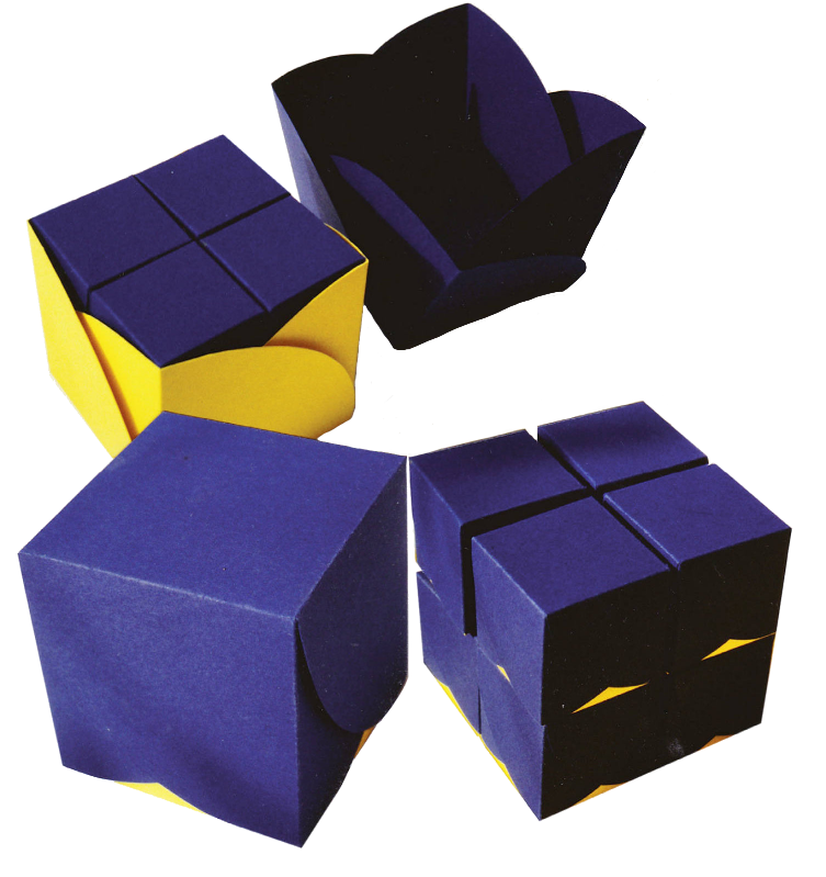 Papier cartonné, 20 x 20 cm et 56 x 8 cm (boîte ouverte)