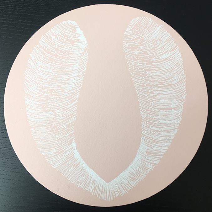 Mollusques, 2016Dessin au feutre blanc sur toile rose, 60 x 40 cm -