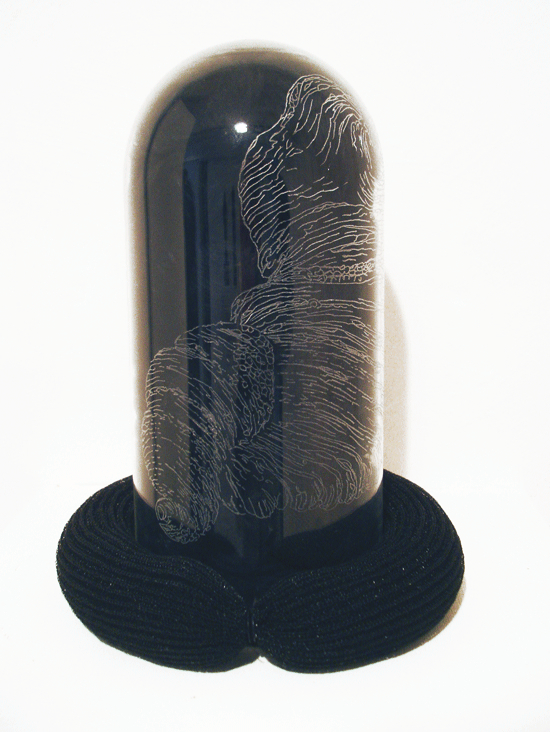 3 globes gravés, accessoires à cheveux, fourrure, 12 x 22 cm (chacun)