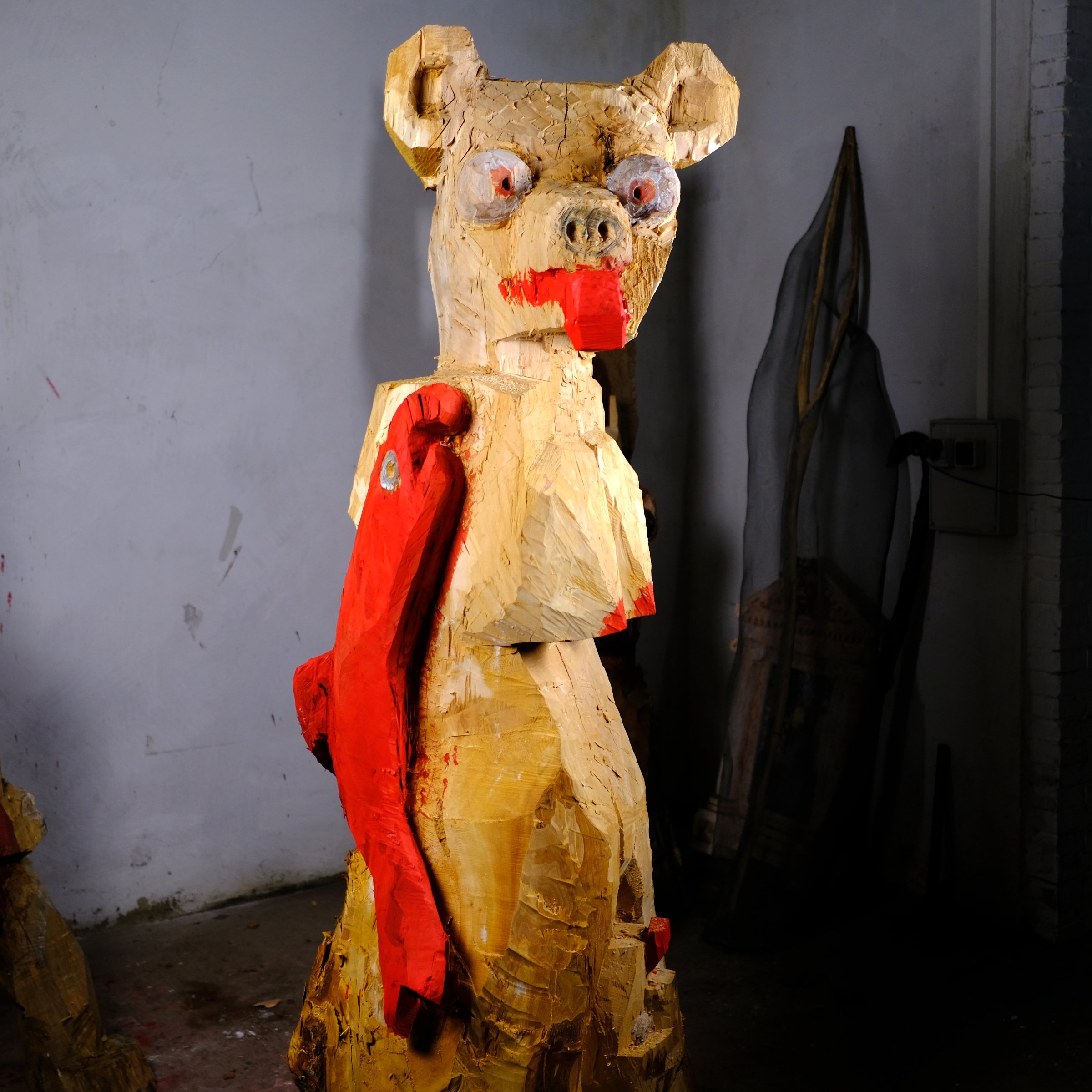 Ourse, serpent, oiseau, 2022 Cèdre, cuivre, 200 x 130 x 180 cm