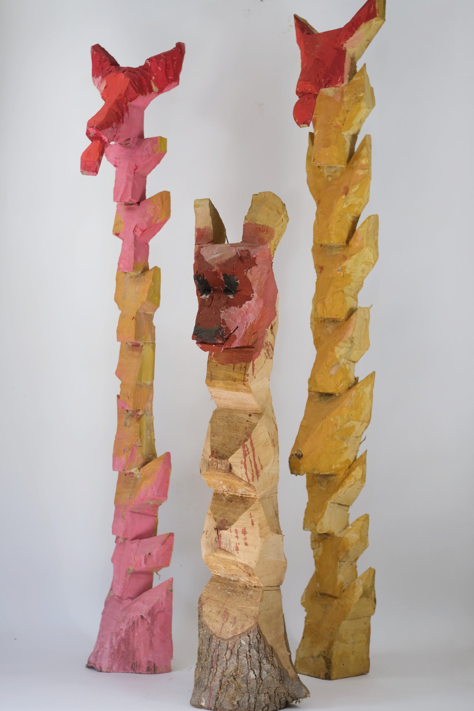Aulne glutineux, pigments 152 x 25 x 25 cm (collection privée), 100 x 25 x 25 cm (collection privée) et 160 x 25 x 25 cm