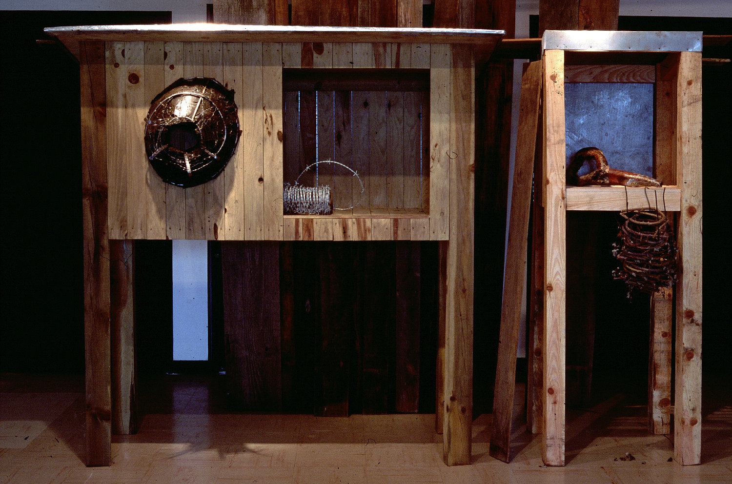 Pin et tôle, 190 x 180 x 80 cm