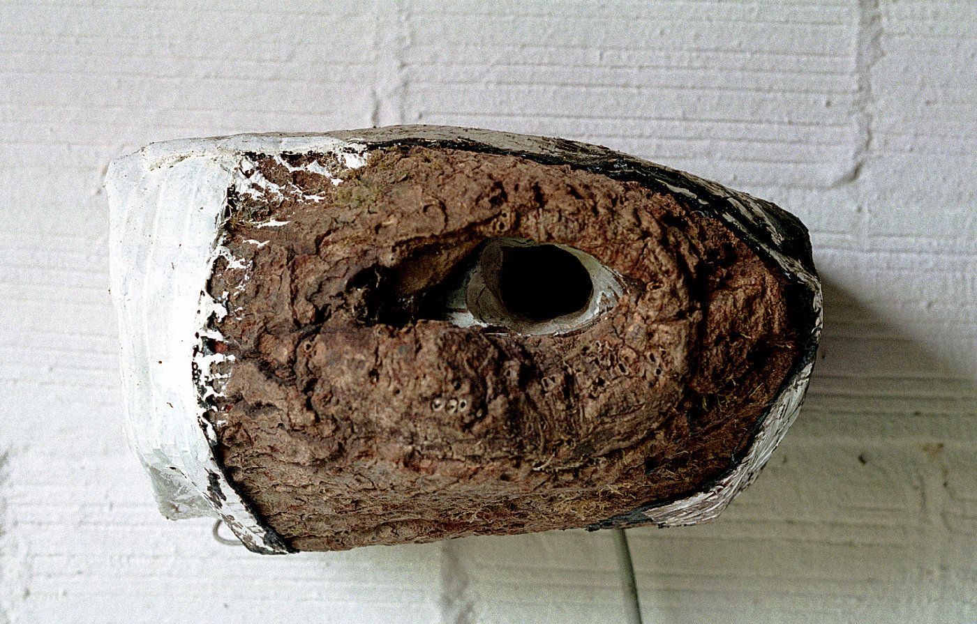 Cabane tête, 2000Platane, tôle et goudron, 60 x 40 x 30 cm -
