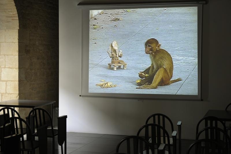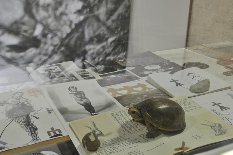 Quatre tables distinctes disposées dans son atelier à L’Isle-sur-la-Sorgue (Vaucluse) ont permis à l’artiste d’effectuer un premier tri de ses archives de 1969 à 2009. Cette hiérarchisation des textes, des carnets à dessins, des dessins sur de simples feuilles de papier kraft, de photographies, de scenarii de performances ou de cartes postales ramenées de ses voyages constituent pour l’artiste le premier mode opératoire pour distinguer ce qu’il nomme un agencement de signes, de formes, de gestes, d’attitudes, définissant une esthétique de l’existence. Le Méta-diaporama est une proposition de lecture et d’approche de cette étape. Un ensemble de documents scannés propose sous une forme distanciée et réinterprétée par leur association, leur combinaison, une lecture particulière que le rythme de défilement des images entrecoupées par les phrases de l’artiste rend singulier à ce projet.