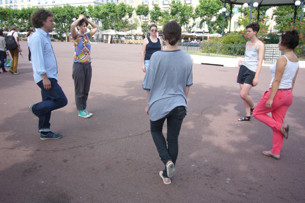 Nous proposons d’utiliser l’image des six cariatides se retournant et faisant agora, pour constituer des groupes de six personnes qui créeraient des cercles de micro-agoras.Nous développerons un travail de perception mobilisant les techniques de méditation ou de yoga traditionnel auquel s’articulera des exercices de retour sur expérience.