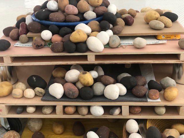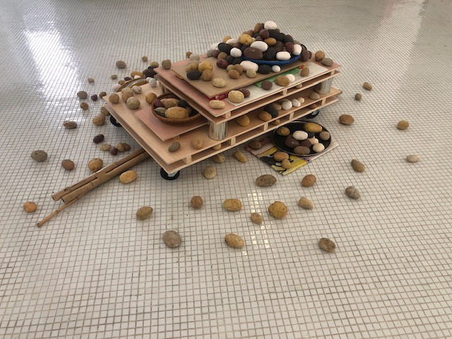 Objet de procession. Démonté en différents modules, le méta-radeau peut