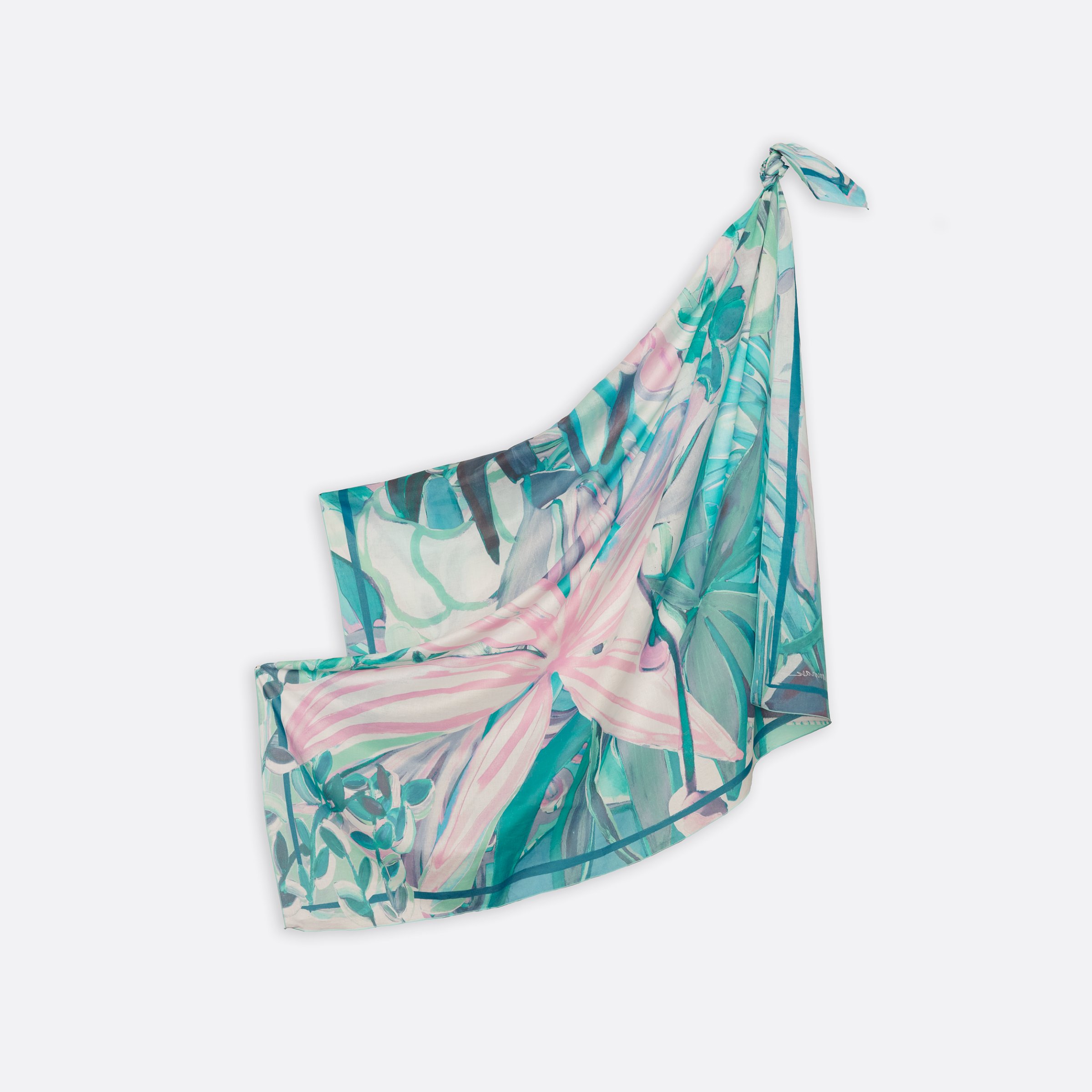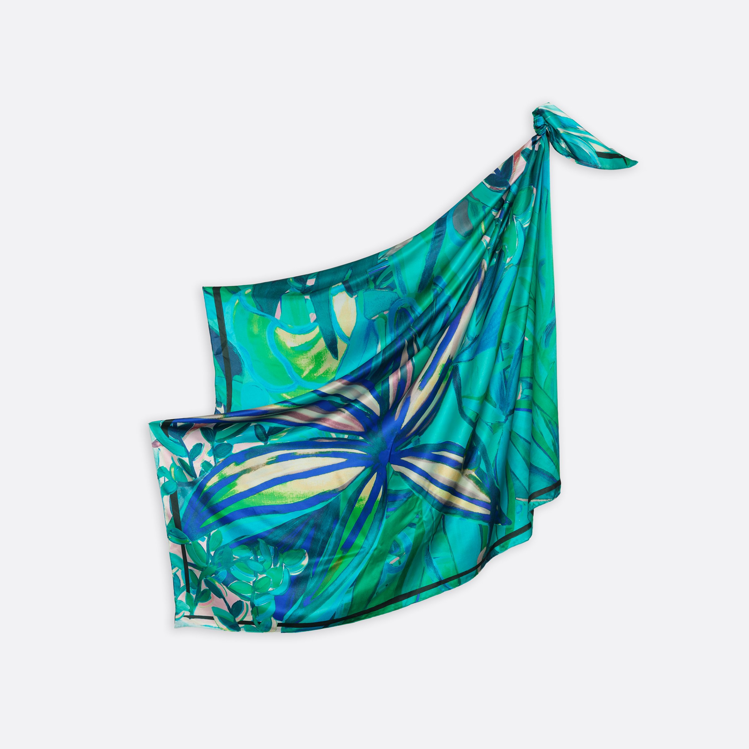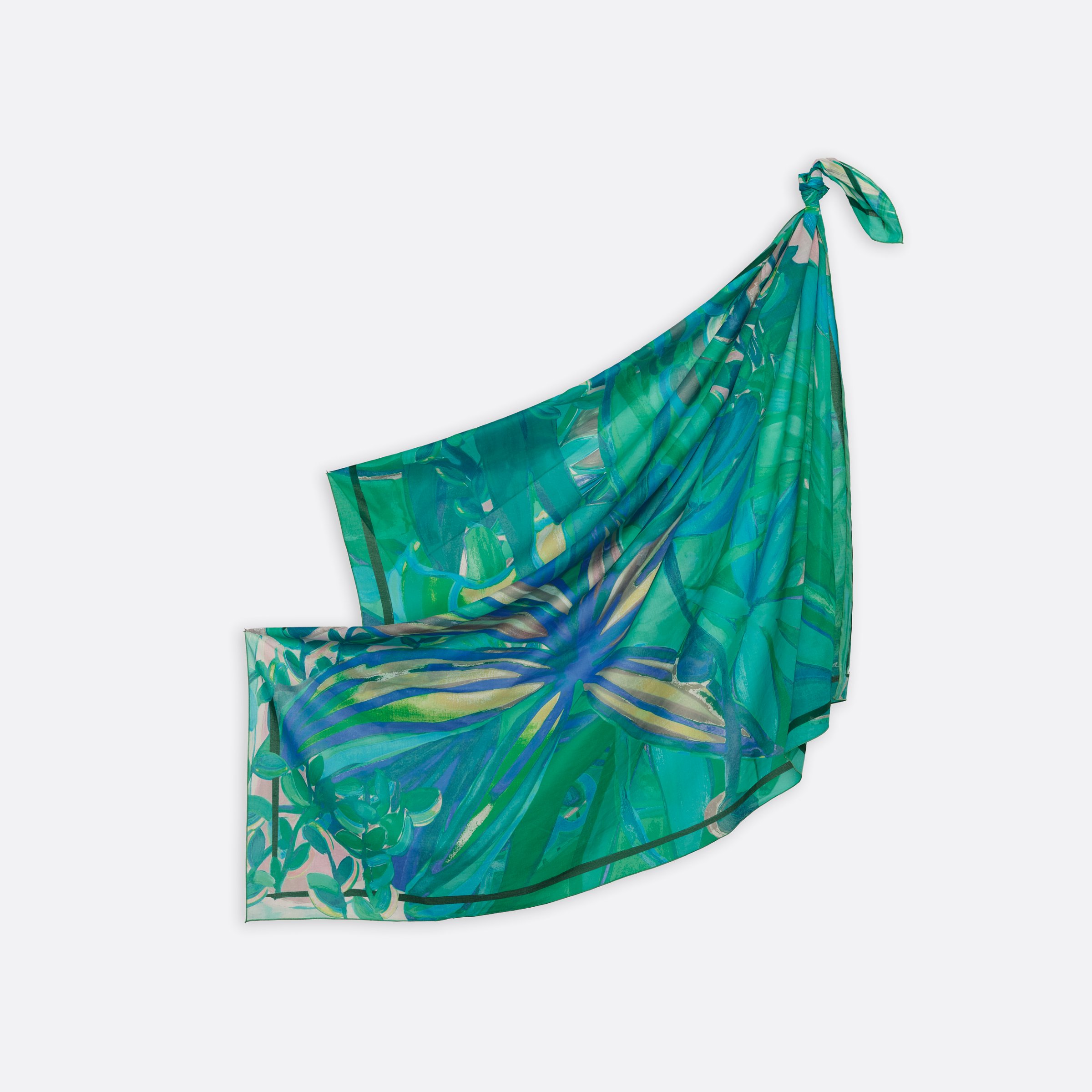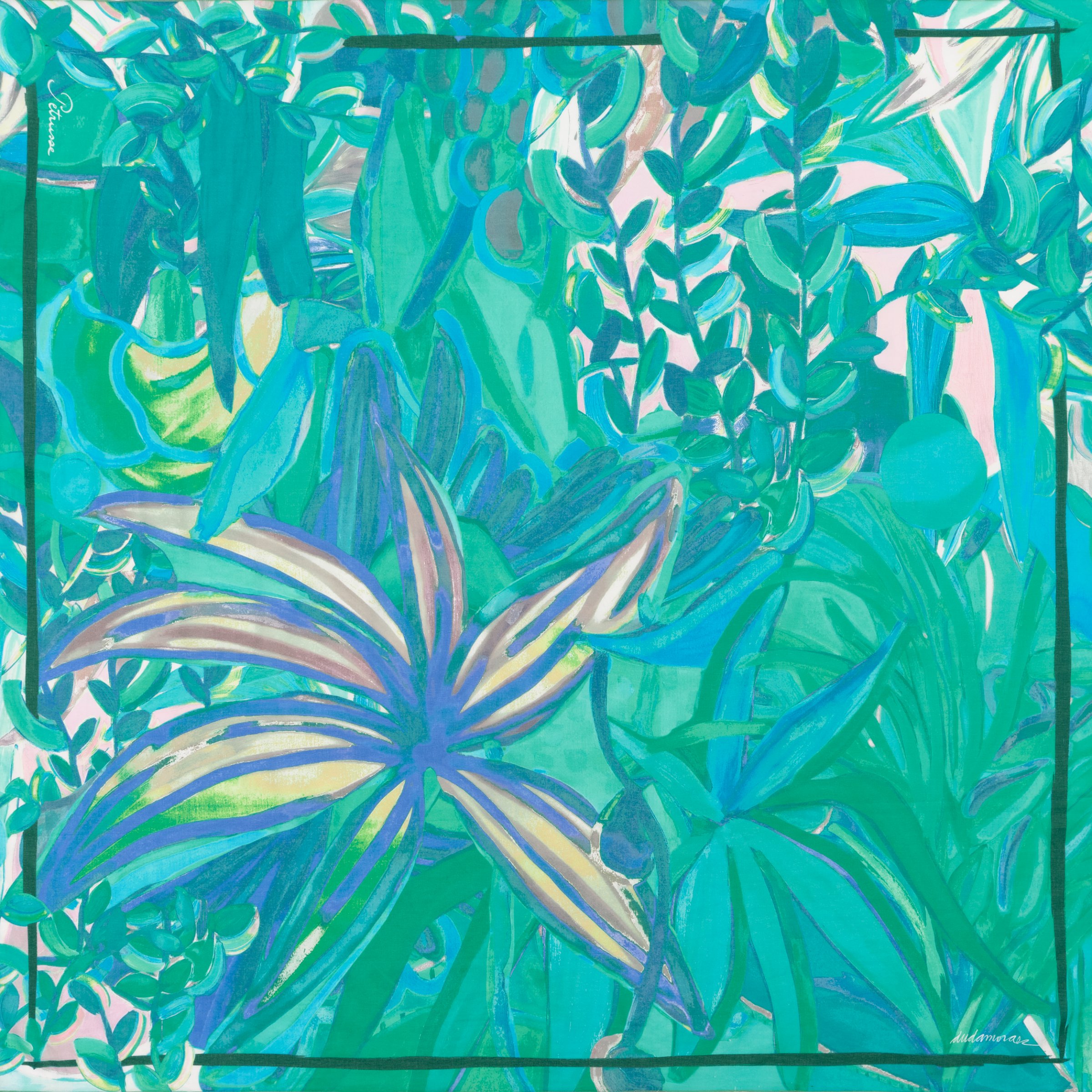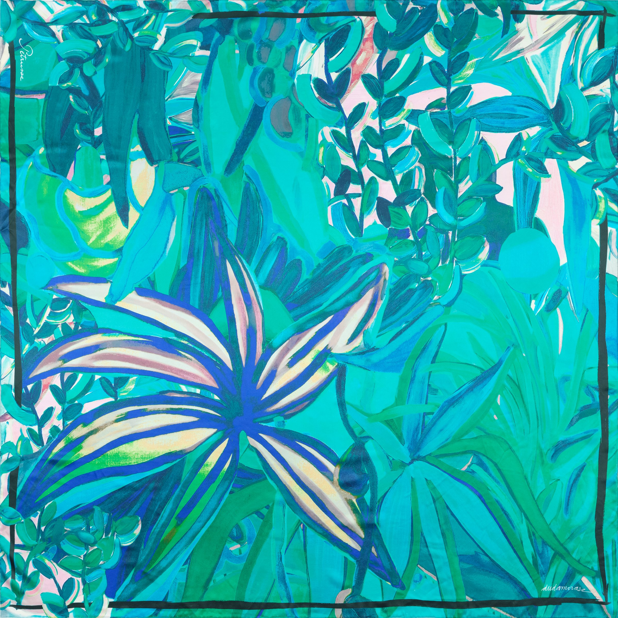 Carré de soie Pétrusse Duda Emeraude, 130 x 130 cm
