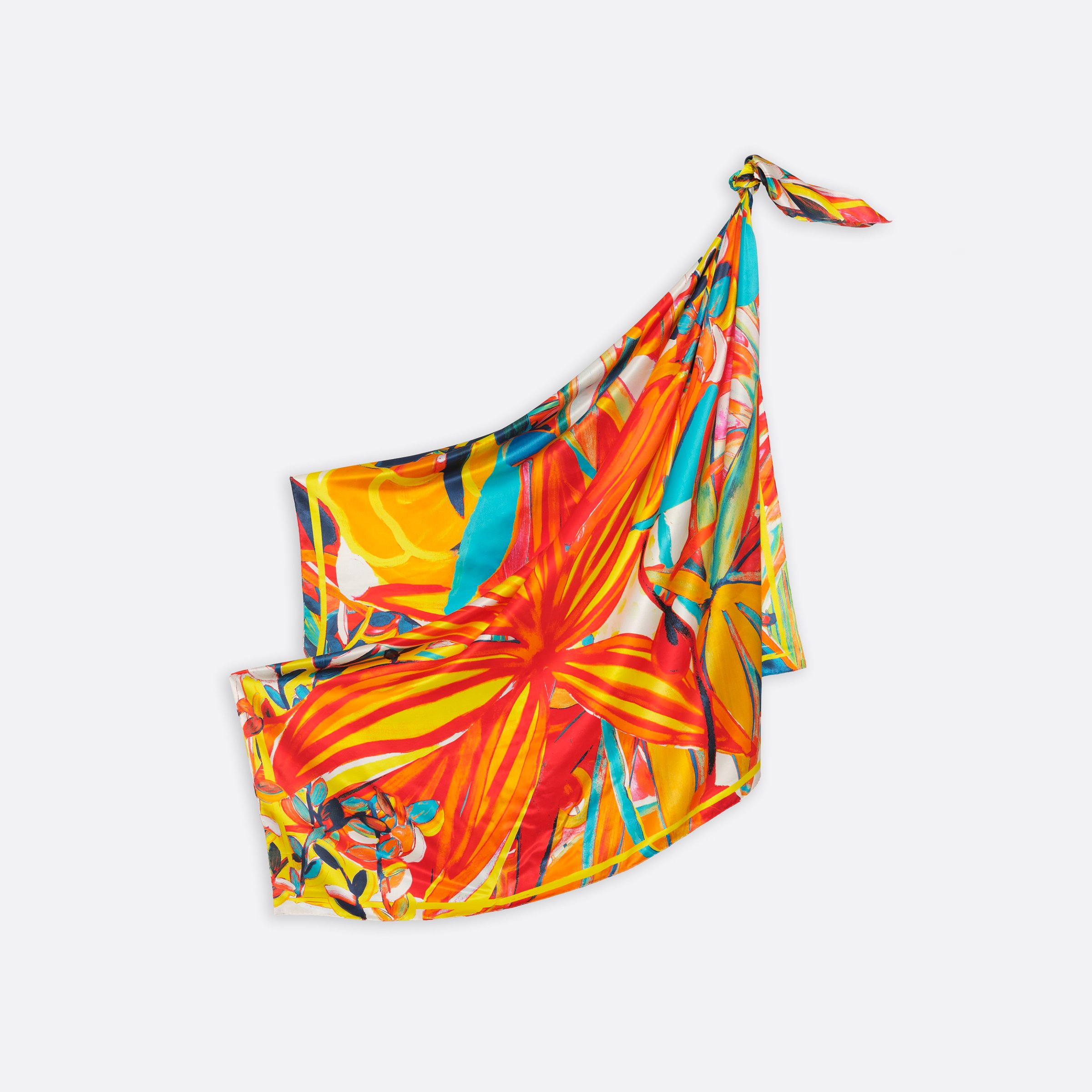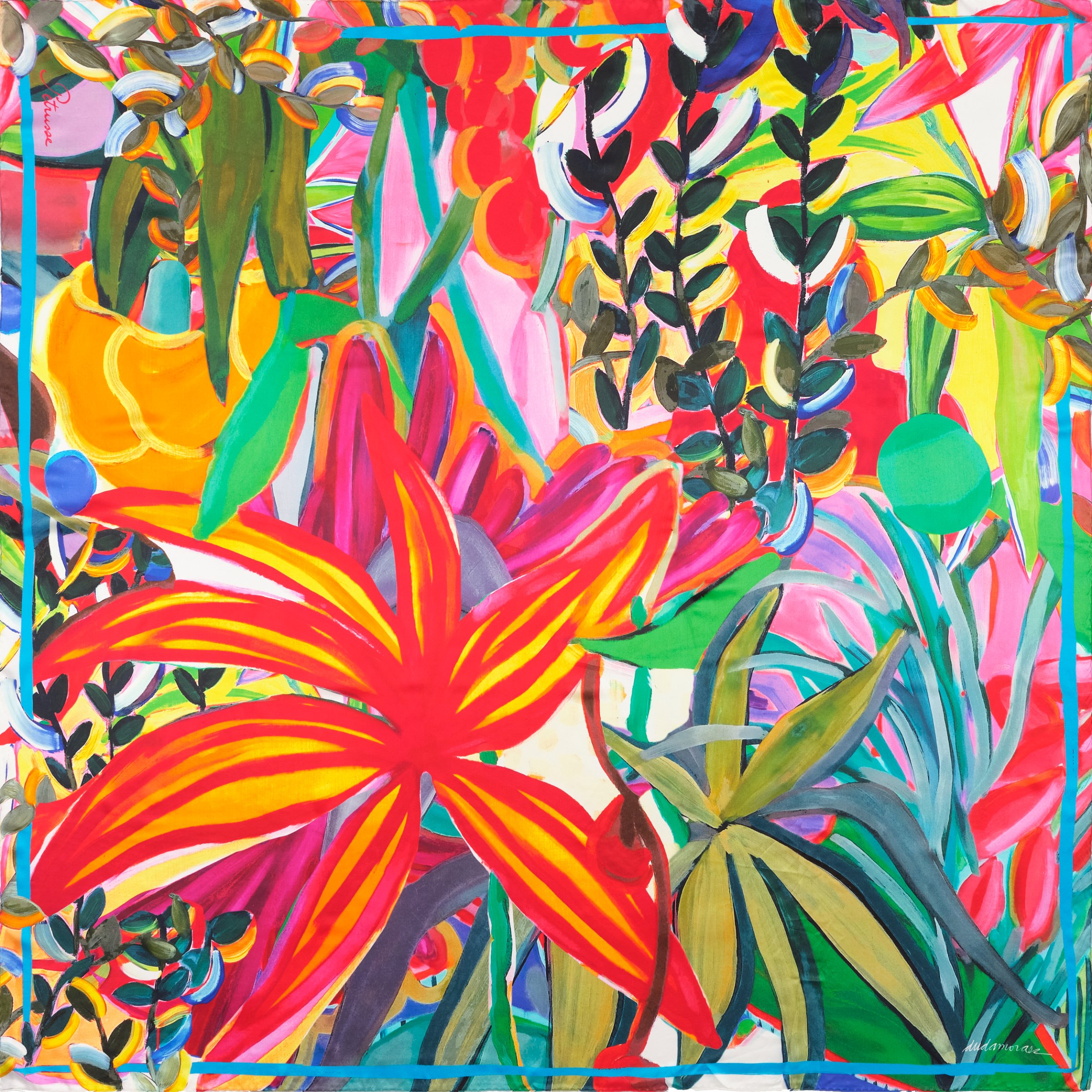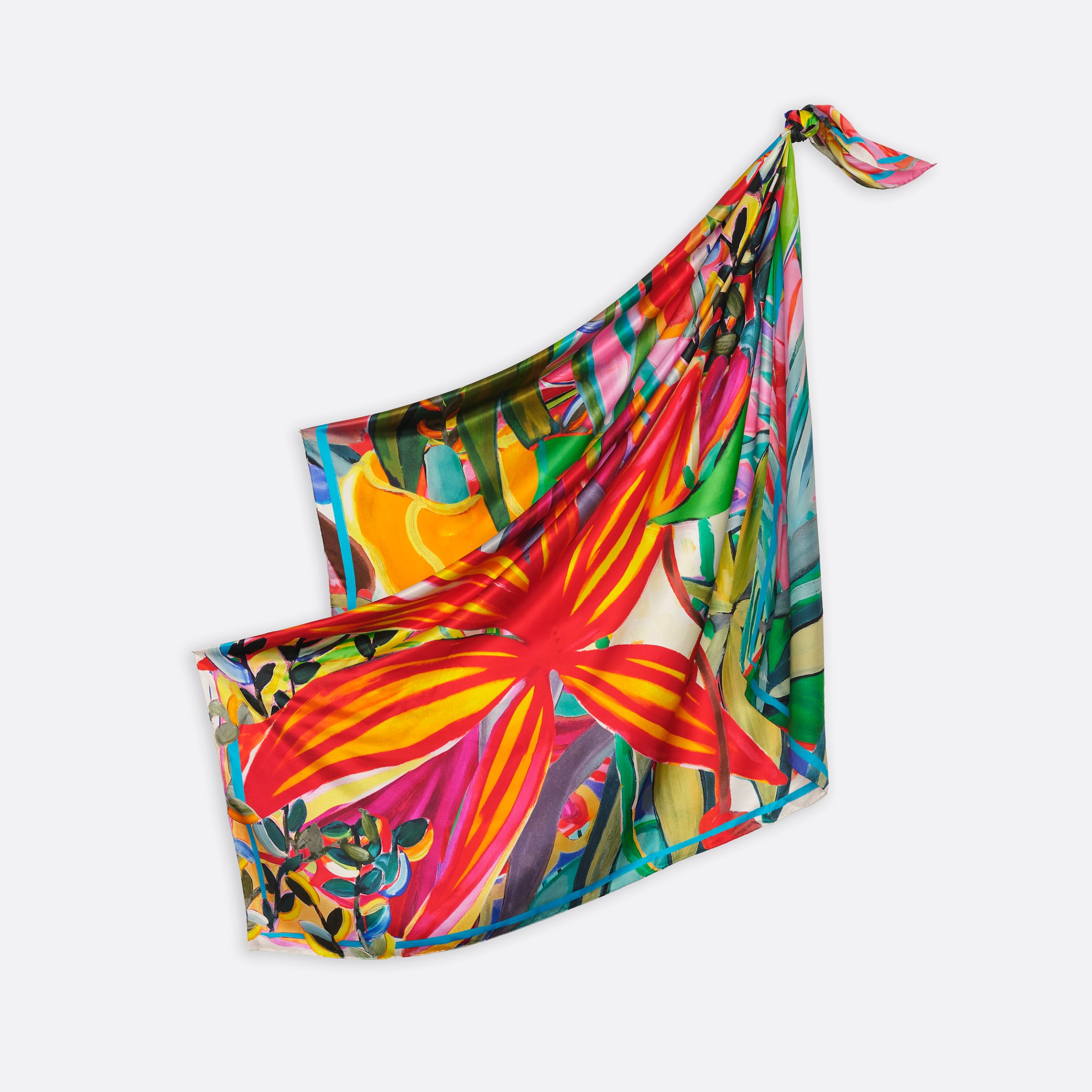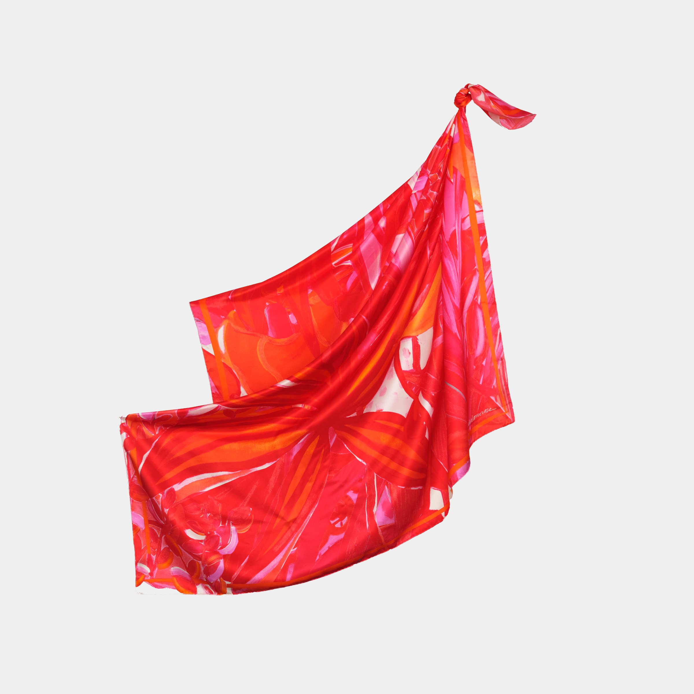 Carré de soie Pétrusse Duda Rouge, 130 x 130 cm