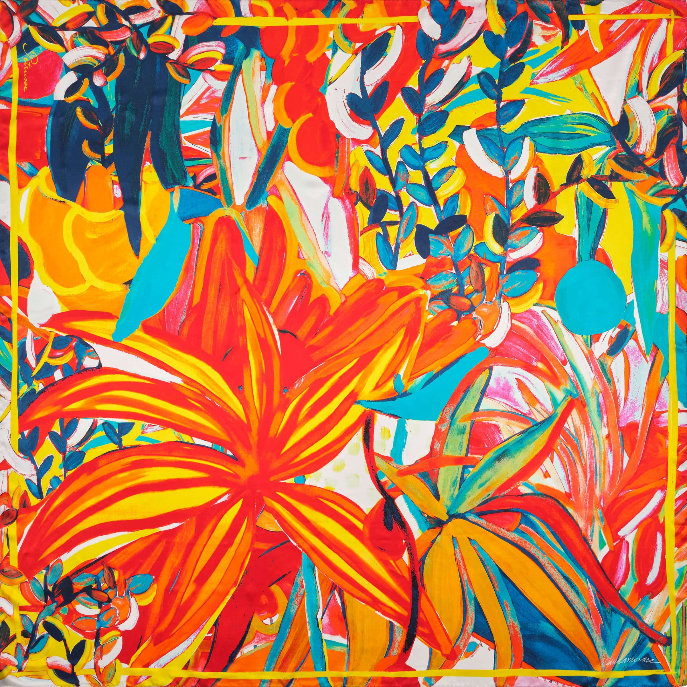 Carré de soie Pétrusse Duda Jaune, 130 x 130 cm