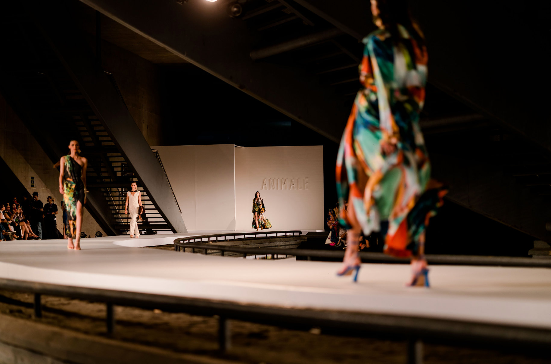 Ensemble d’images de la marque Animale présentant les vêtements réalisés à partir des motifs de Duda Moraes et images du défilé à Rio de Janeiro (Brésil), 2023