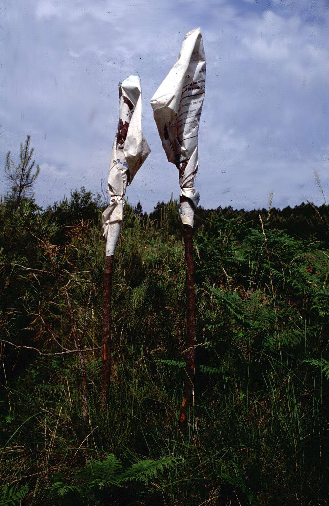 Les forestiers délimitent leur propriétés de marques et de bornes ; cette volonté de signaler le territoire et la précarité des moyens employés rapprochent ces signes fonctionnels de l’écriture archétypale.