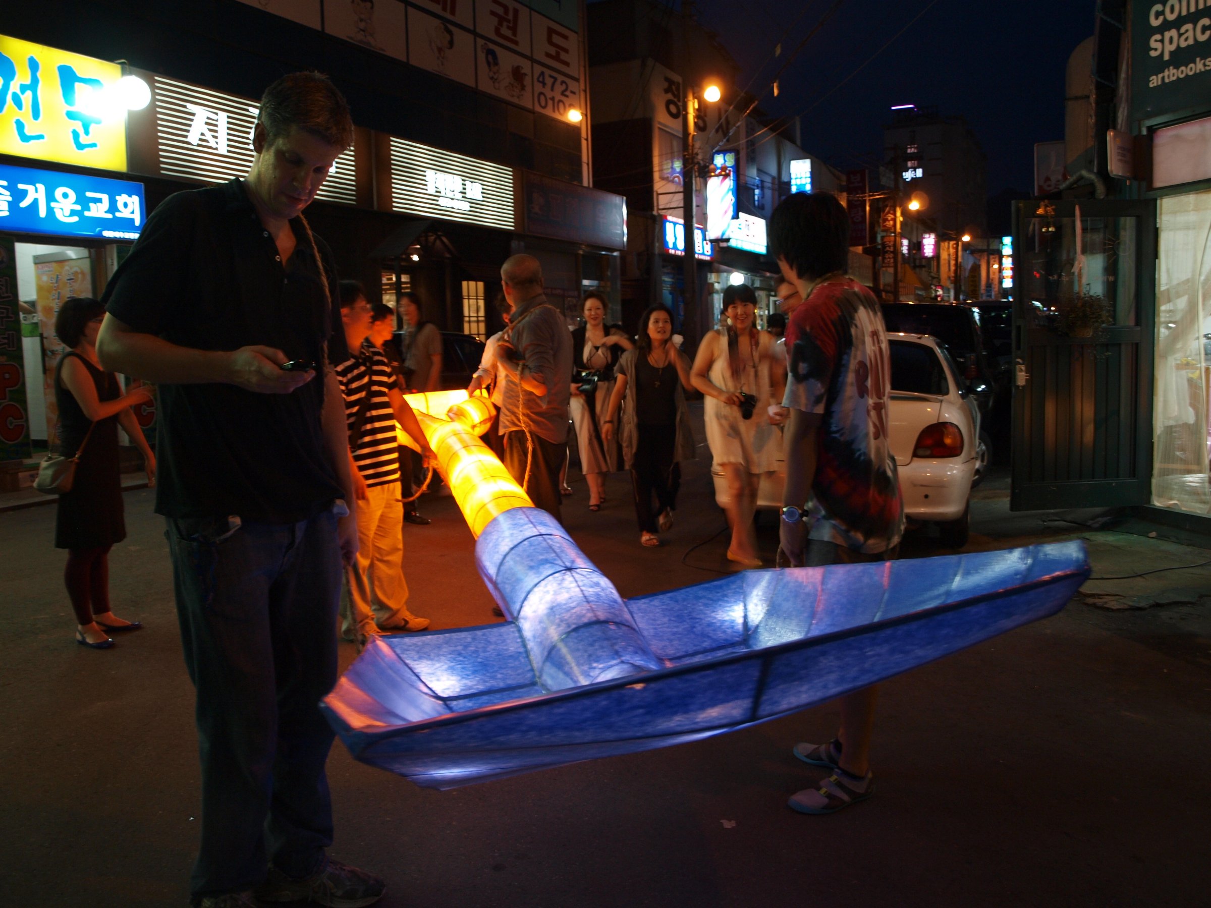 Sap, est un signe-outil qui utilise les techniques traditionnelles coréennes. La fabrication a été suivie d’une procession-performance dans le marché de Seoksu.
