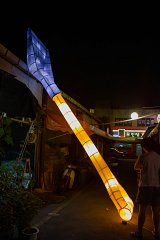 Acier, papier vernis, ampoules, 570 x 125 x 125 cm