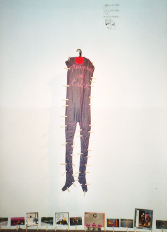 Partant d’un mode d’expression le plus souvent graphique (dessins, peintures, couture, photographie) et quelques objets au sol fonctionnant comme des dispositifs, ils ont donc choisi d’investir le lieu privé de la galerie en la pervertissant avec des fragments dont le contenu est issu d’espaces publics et urbains environnants. La galerie devient une sorte de laboratoire pour expérimenter et questionner des images concrètes et aussi mnémoniques de la cité.