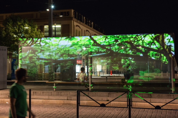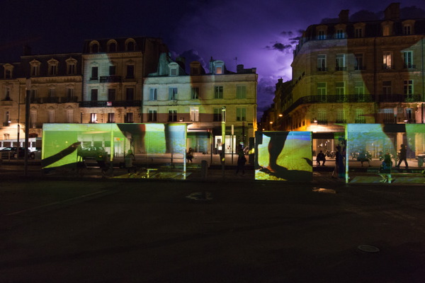 Plus tard lui vint l’idée de déplacer les paysages, à la manière d’un géant qui recueillerait un morceau de terre ici pour le transplanter là. Non pas en projetant une vidéo depuis un point fixe, à la façon du cinéma en plein air, mais en embarquant son système de vidéoprojection dans un véhicule en mouvement. Rien de tel pour faire voyager le paysage que de circuler avec lui. C’est logique et ça conduit directement en pays poétique."