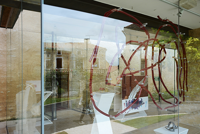 Nostalgie proustienne, campagne=grand-mère=confiture : des tubes de néon vermiculaires, scellés sous vide (gage de conservation), formant des cercles comme des ondes brouillées, sont remplis d’une confiture de fraises.