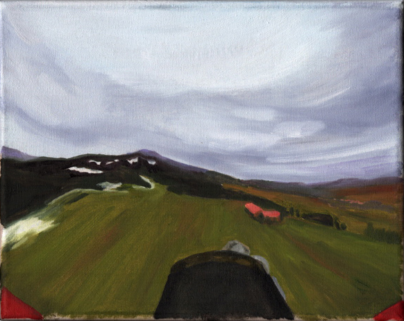 « Mattéo fait souvent voler son avion télécommandé au-dessus de la campagne vaudoise. Il a fixé une petite caméra sur le nez de l’avion pour filmer ses vols. Des captures d’écran m’ont permis de récupérer quelques images pour réaliser cette série. Ce point de vue sur la campagne est une expérience totalement différée, que je ne pourrai jamais vivre, comme celle rêvée d’être un oiseau. »