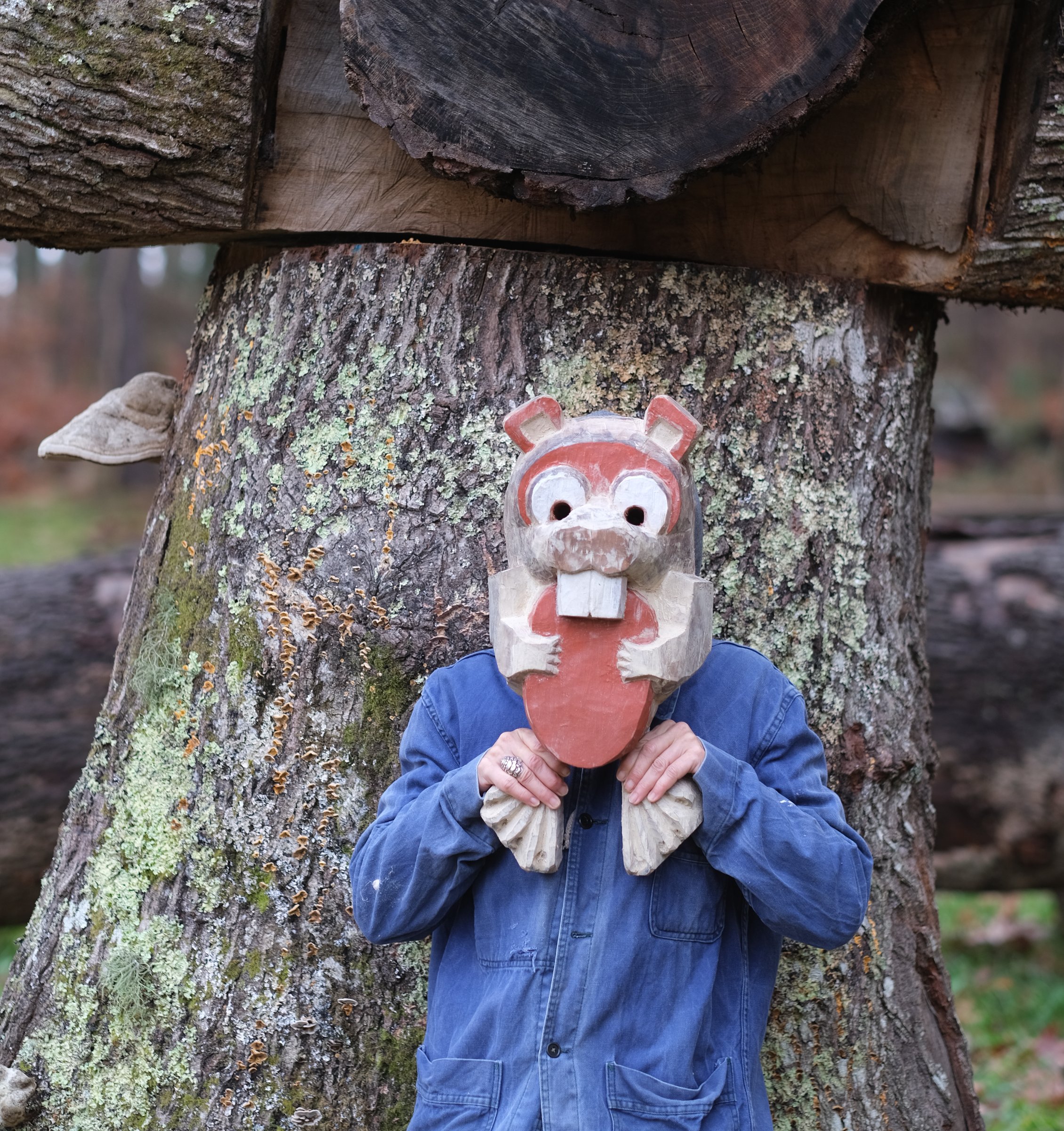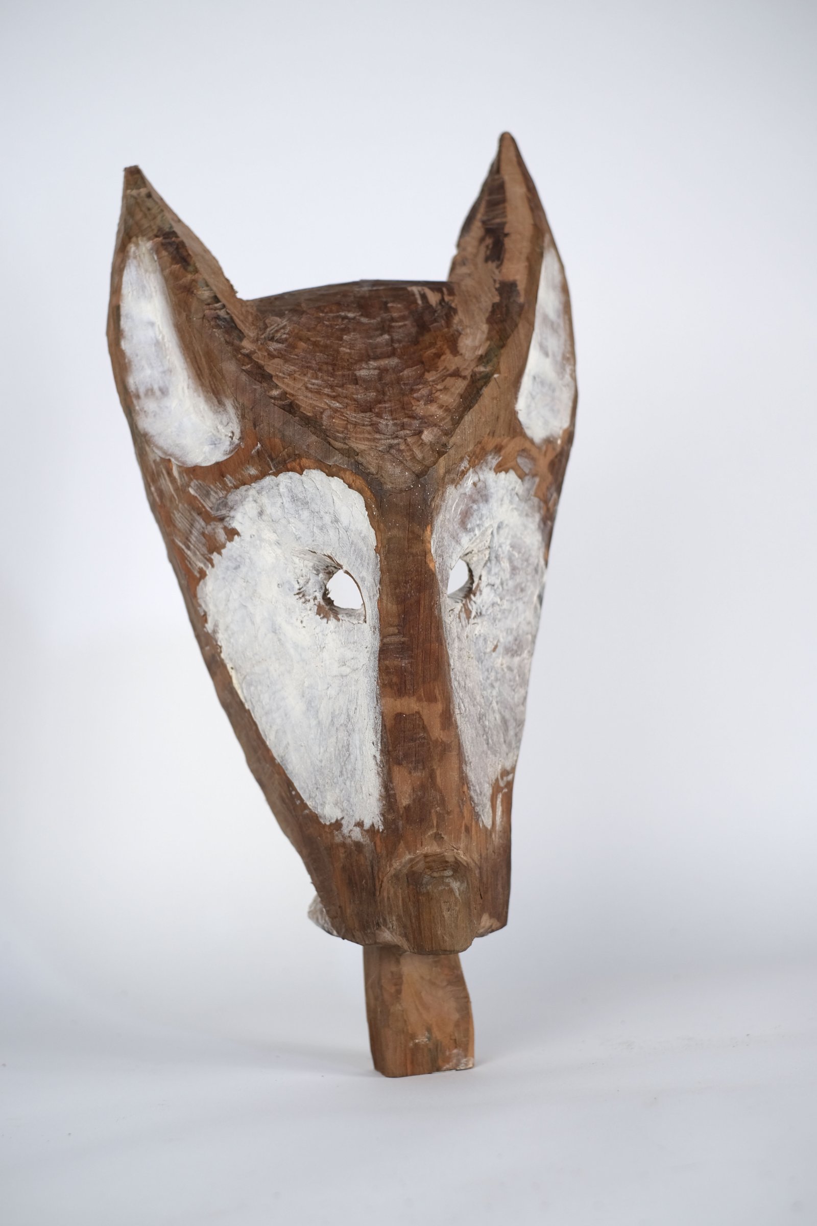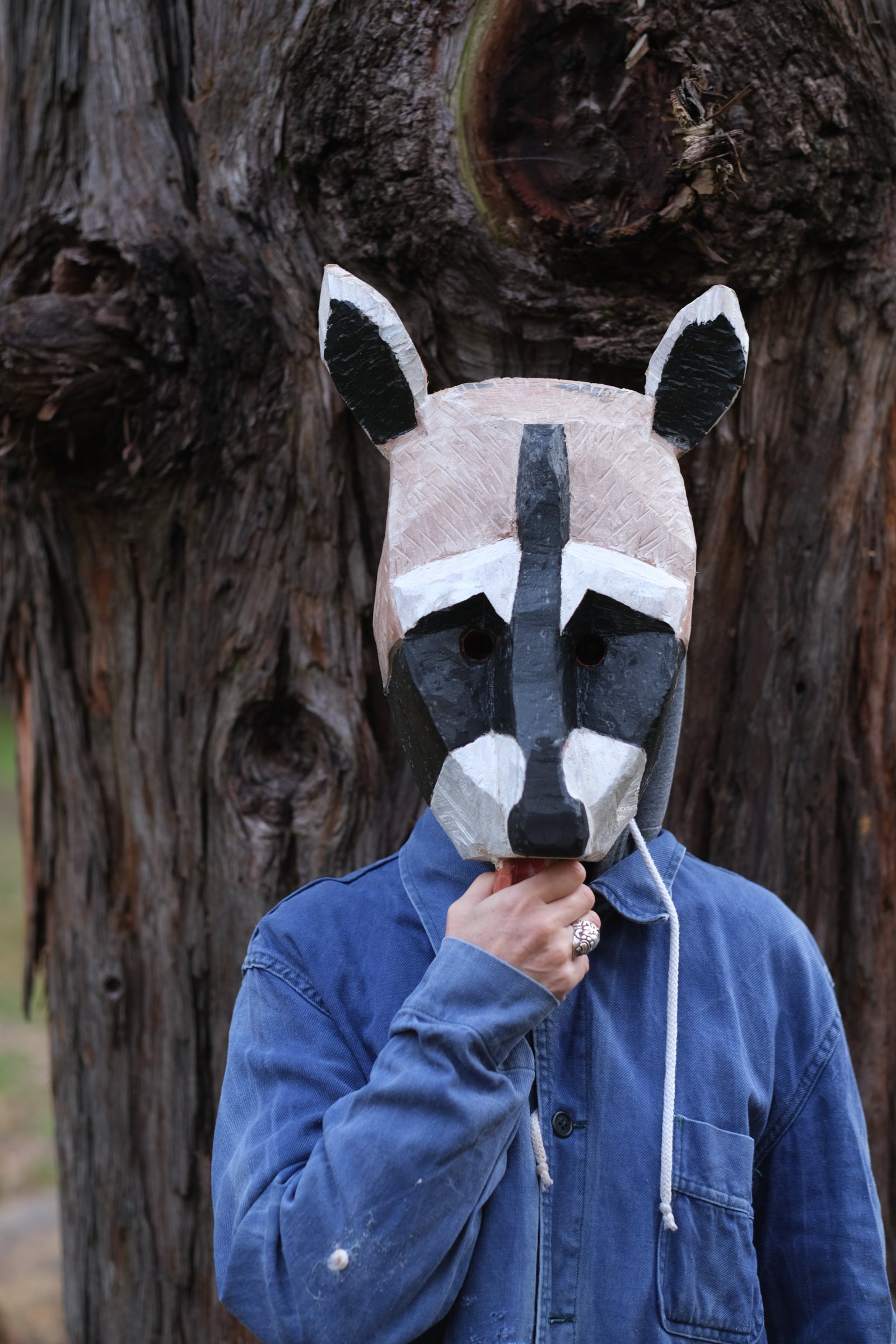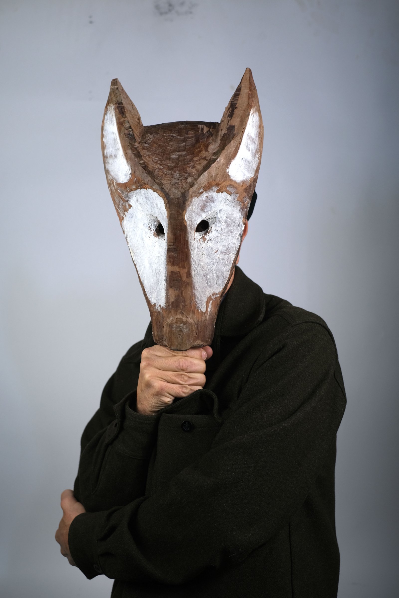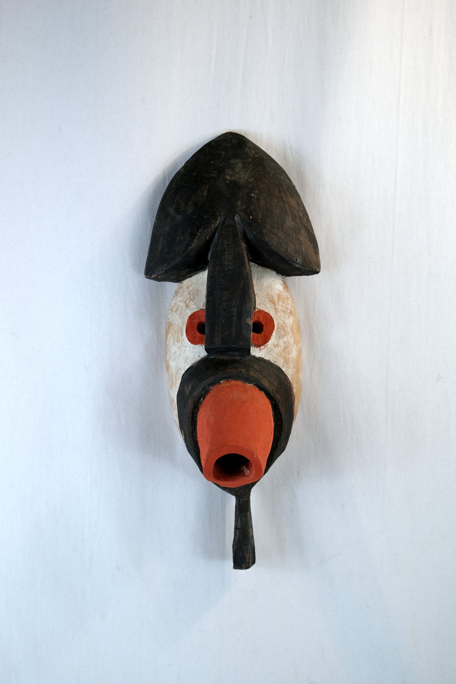 La production de masques est installée dans ma pratique depuis 2017. Autonomes, ces pièces peuvent être présentées sur des cimaises ou des socles, voire être portées. Elles sont également parfois associées à d’autres sculptures, qu’elles complètent (voir Téké (2025)) ou habitent (voir Les métamorphoses de Champey (2020)).