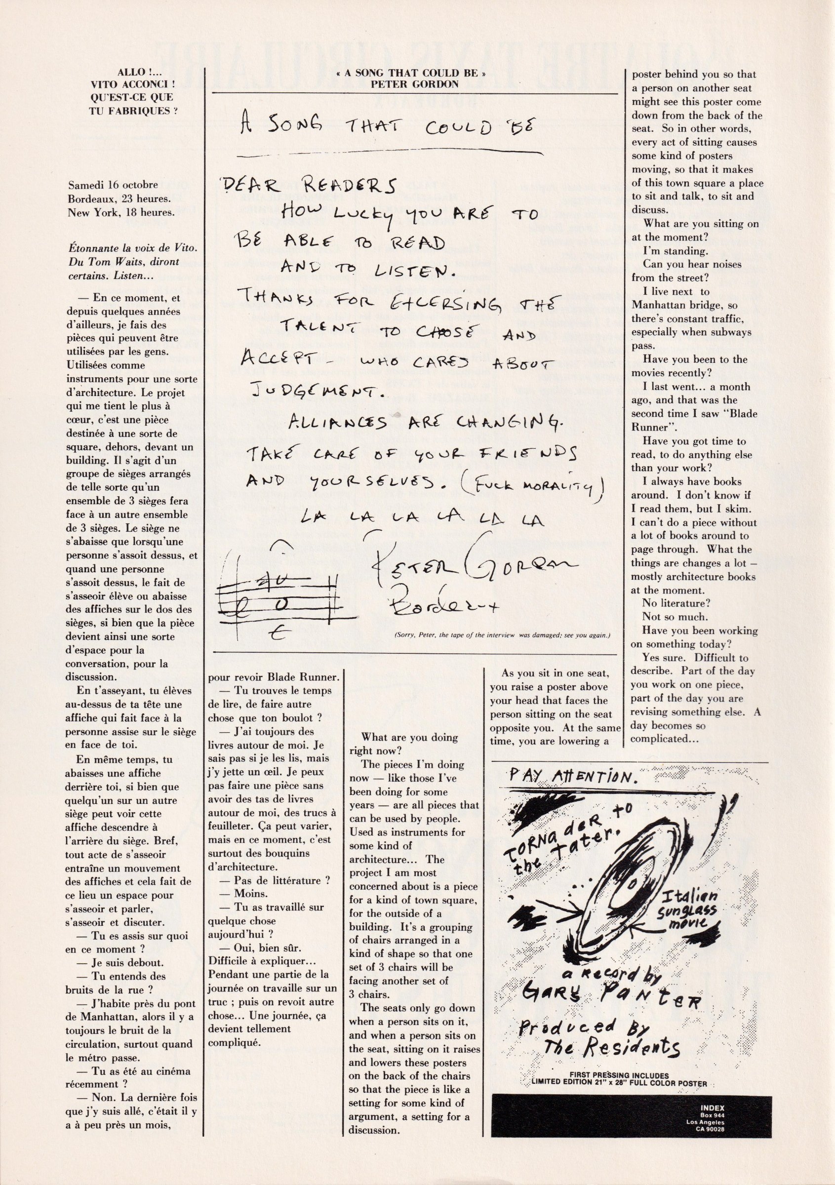 Avec les participations de Vito Acconci, Perter Gordons et du Museum fur (sub)Kultur (Berlin)