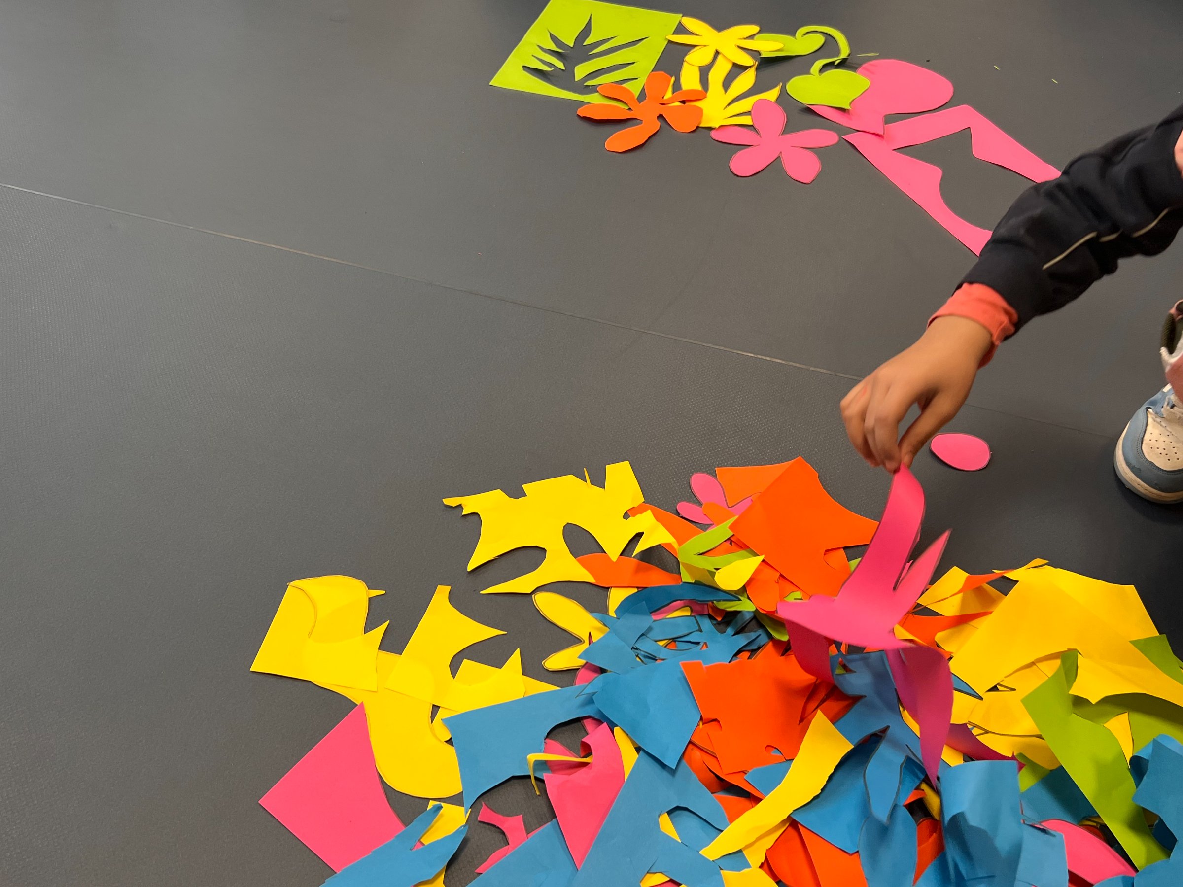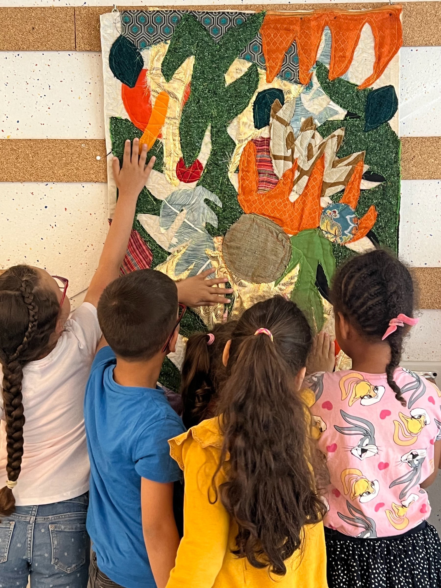 L’atelier pédagogique Le lieu de l’œuvre permet de créer un lieu d’exposition au sein de l’établissement où les enfants et les adolescentes peuvent être en contact avec une œuvre d’art et une artiste, à travers des rencontres et un atelier qui explore les principes de production liés à sa démarche.