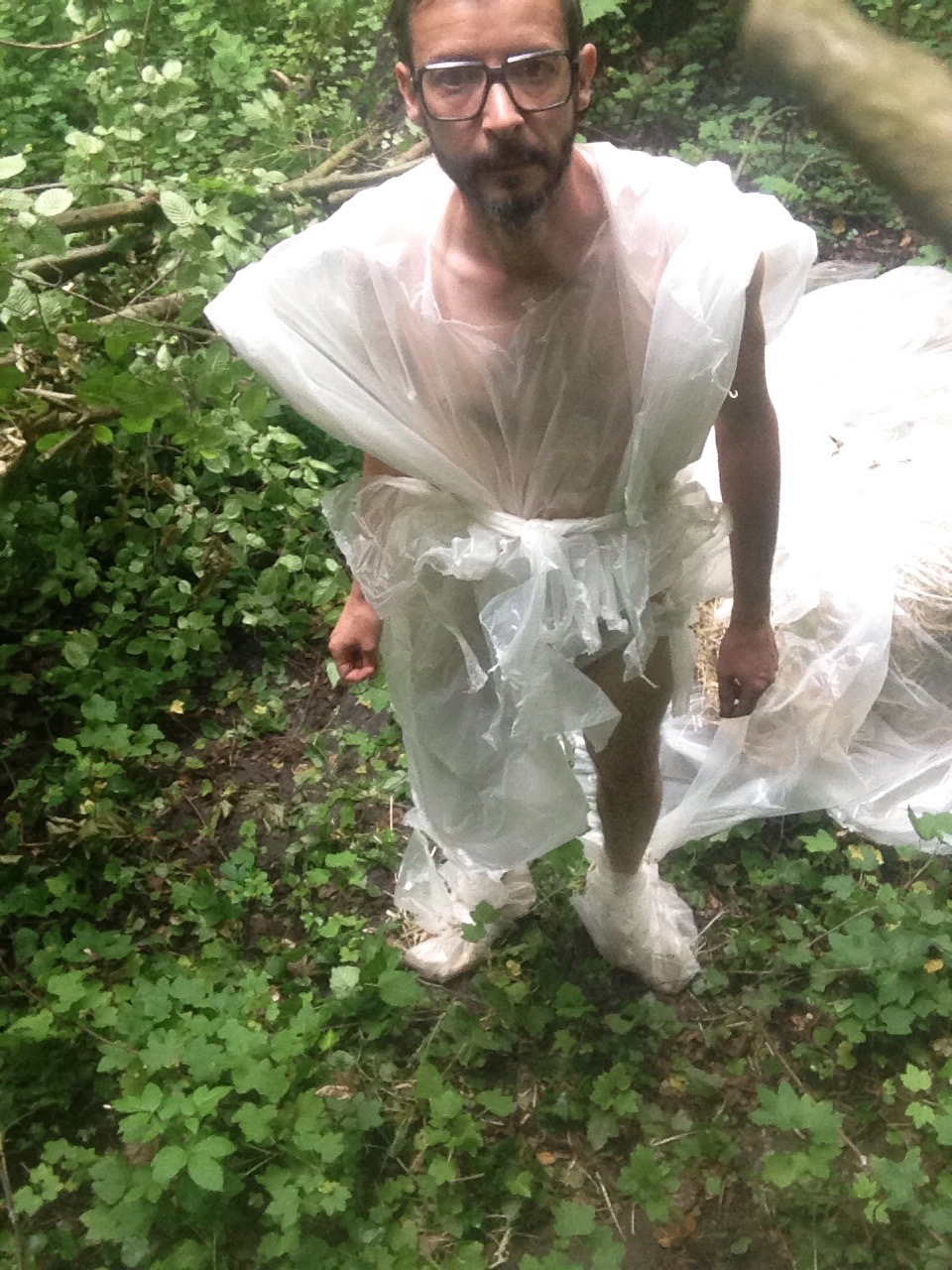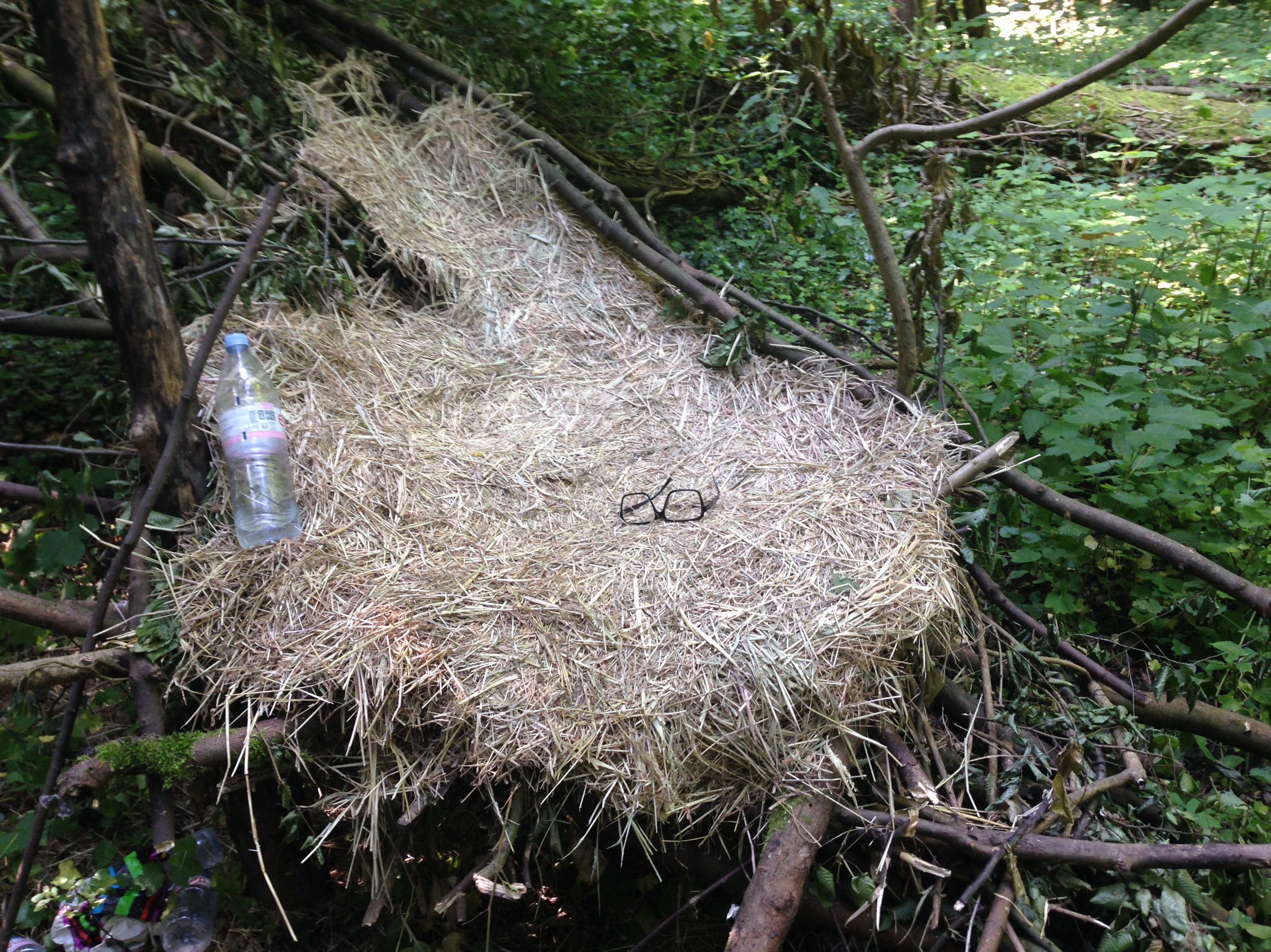 « Dix jours et dix nuits à poil en forêt avec, pour tout bagage, l’iPhone qui me sert à poster des images sur un blog, une cigarette à vapeur et ma paire de lunettes. Il faut que je vous laisse parce que j’ai beaucoup de choses à collecter pour passer ma première nuit et, déjà, la pluie me harcèle. Heureusement que j’ai trouvé une vieille bâche et volé du foin. » Le post du premier jour semble catalyser l’essentiel de l’excitation vécue par Laurent lors de son “exote” parmi la faune et la flore. Le réel facteur d’inconfort s’avère n’être ni le froid ni la faim ni les mauvaises rencontres ou les angoisses nocturnes, mais simplement l’attente. Lors de cette nouvelle expérimentation, la mise en tension de son intégrité corporelle atteint son paroxysme, l’obligeant à se modeler en fonction des différents habitants côtoyés, à composer uniquement avec les ressources accessibles et réfréner toute forme d’enthousiasme. Au bout de sept jours, l’ennui prend le pas sur la résistance : « Il est temps de laisser les animaux tranquilles. »