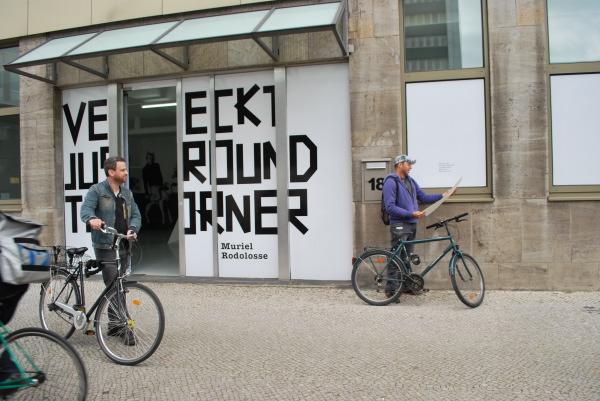 Just Around the Corner est pris dans son sens littéral et fait référence à l’œuvre Going around the corner piece de Bruce Nauman dans laquelle le spectateur tourne autour d’un cube blanc ; quatre moniteurs sont posés au sol, reliés à quatre caméras qui le filment sur son passage. C’est au tournant de la pièce, c’est-à-dire là où il ne s’y attend pas, que le spectateur se voit dans le moniteur avec un décalage spatio-temporel. Cette référence artistique permet à Muriel Rodolosse de placer sa proposition dans un rapport avec la physicalité du lieu qui devient à la fois espace d’exposition et espace de dissimulation. (...) »