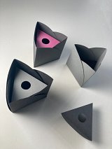 Papier cartonné, 20 x 20 cm et 56 x 8 cm (boîte ouverte)
