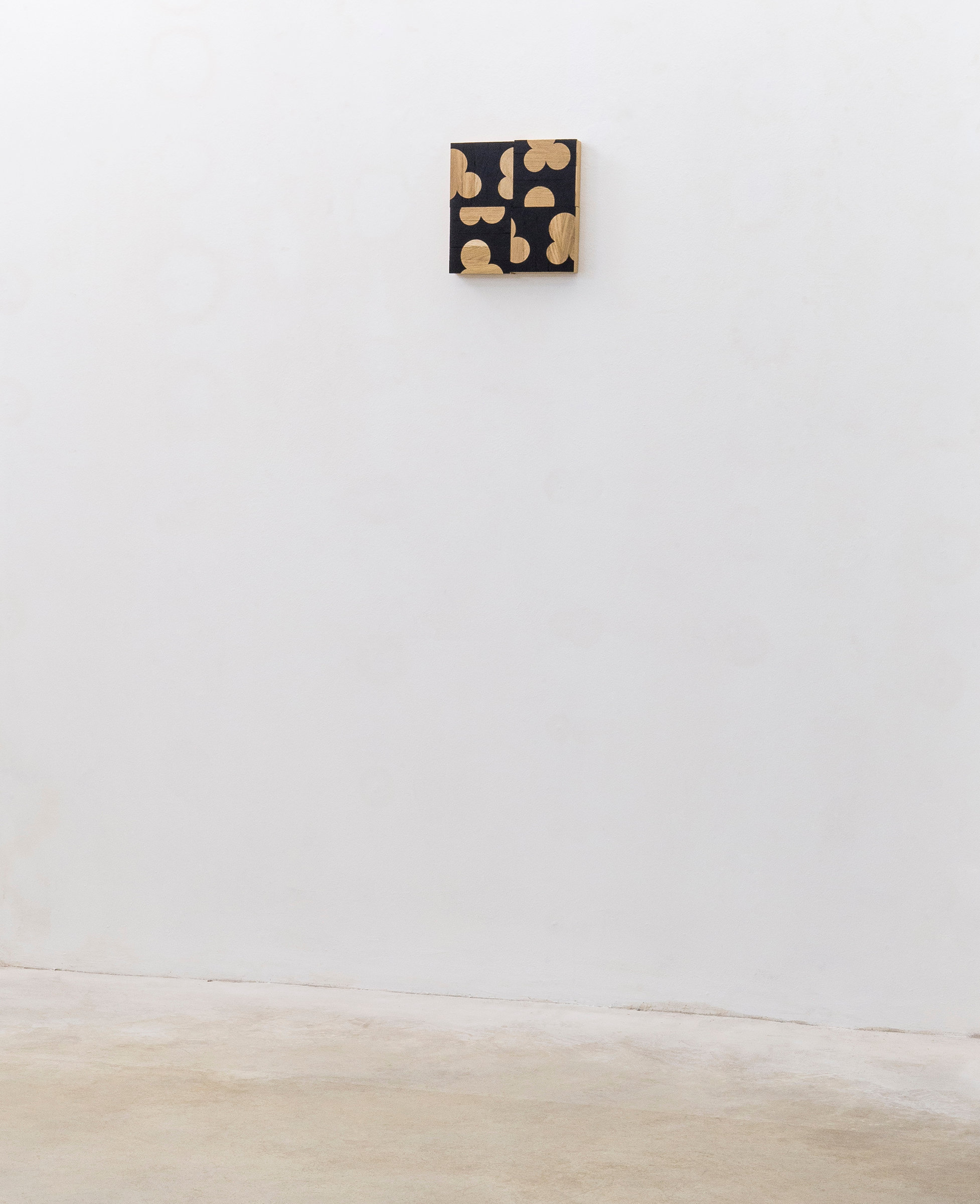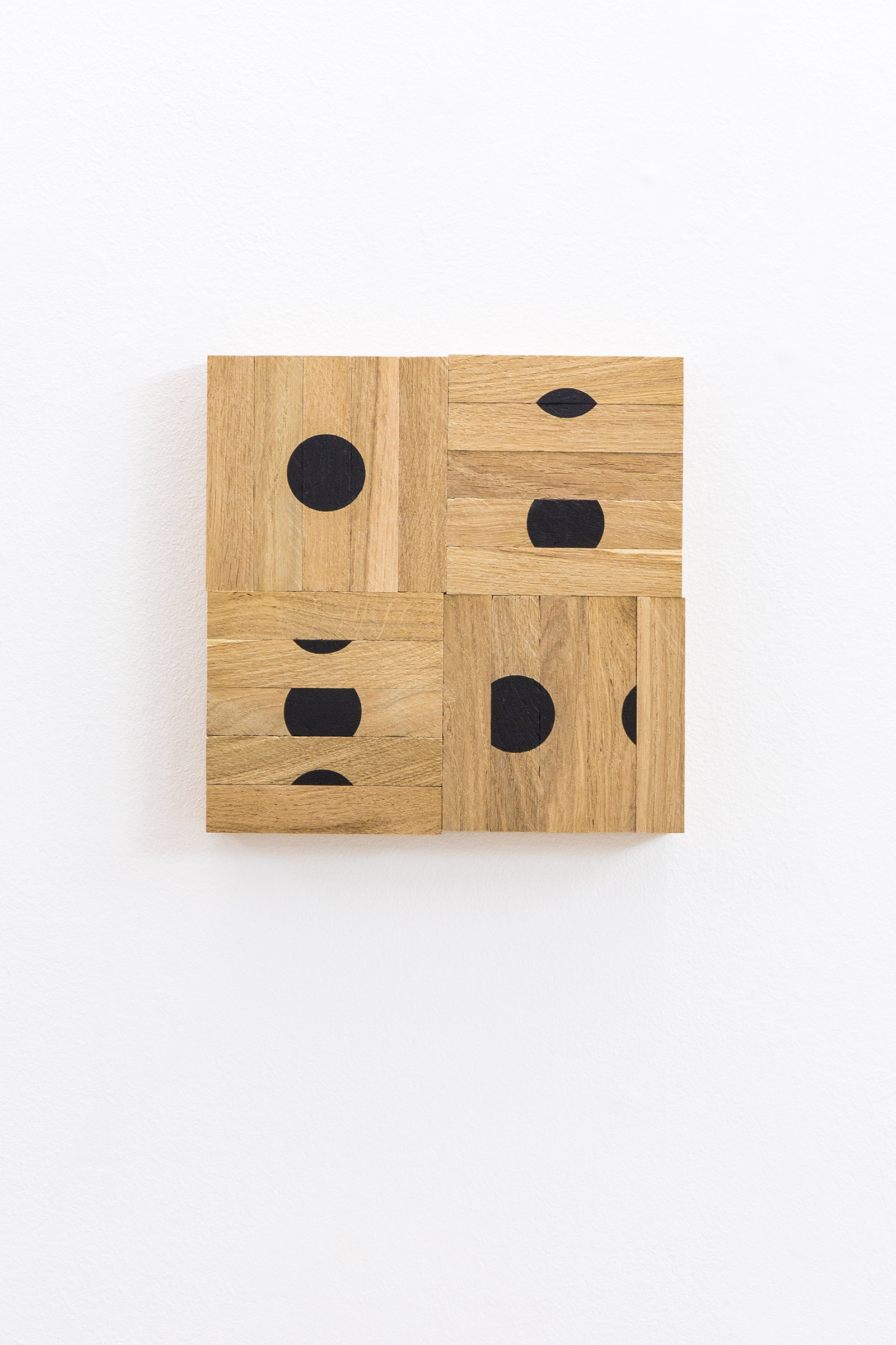 Chemin de croix, 2024Série de quatorze peintures, acrylique sur parquet en chêne, 24 x 24 x 4 cm chacune