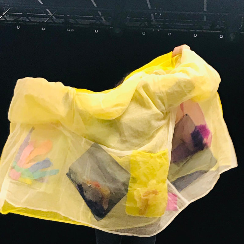 C’est à travers la confection de ces costumes que Radmila Dapic Jovandic a découvert et expérimenté la tarlatane, un tissu léger, aéré et en apparence fragile, qui permet de deviner le corps de celui qui le porte. Neuf pièces ont été produites pour Aladin, spectacle conçu par Marie-Laure Bedel-Tarneaud. La tarlatane est également utilisée pour la création de costumes et de décors pour le spectacle pour jeunes enfants Cocon de la chorégraphe et danseuse Eva Klimackova, que l’artiste a réalisés dans le cadre d’une résidence à Chinon. Les recherches menées avec ce matériau ont conduit Radmila Dapic Jovandic à l’intégrer dans ses productions personnelles à l’instar du papier (voir Sans titre (2024)).