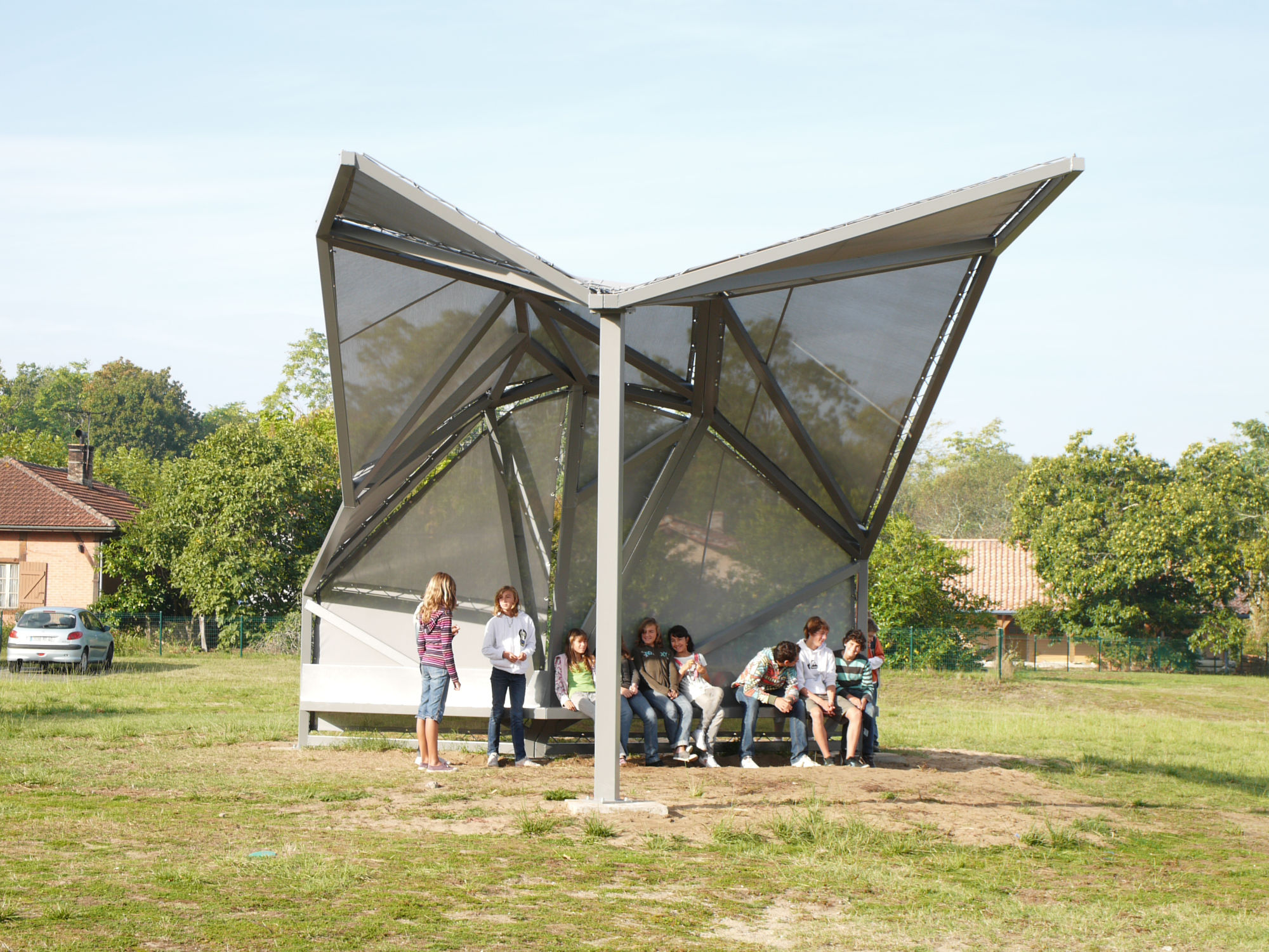 Acier et toile, 6 x 6 x 10 mètres 1% artistique, Collège de Linxe Réalisation : Société Sarem, Anglet
