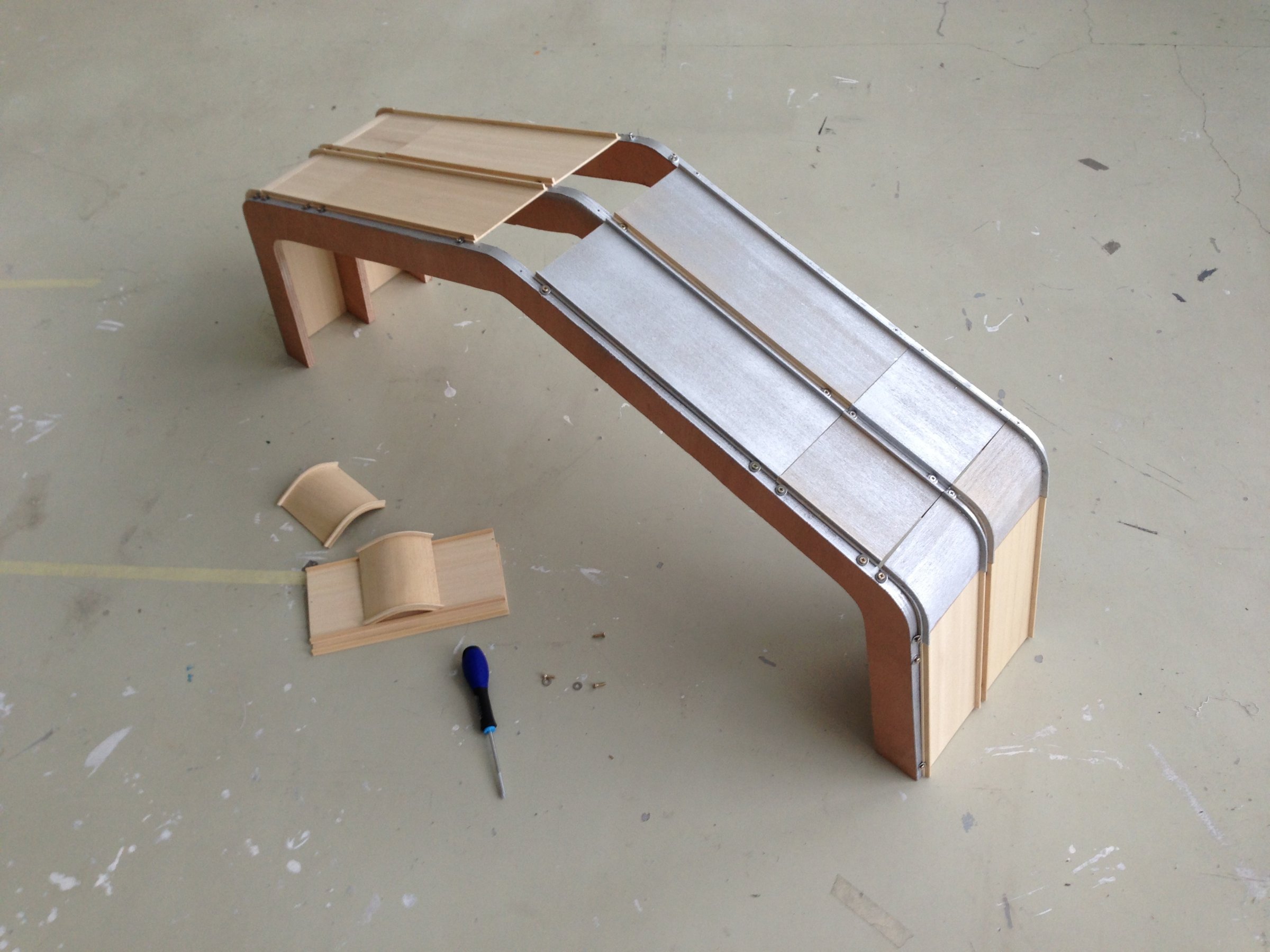 Bois cintré peint,