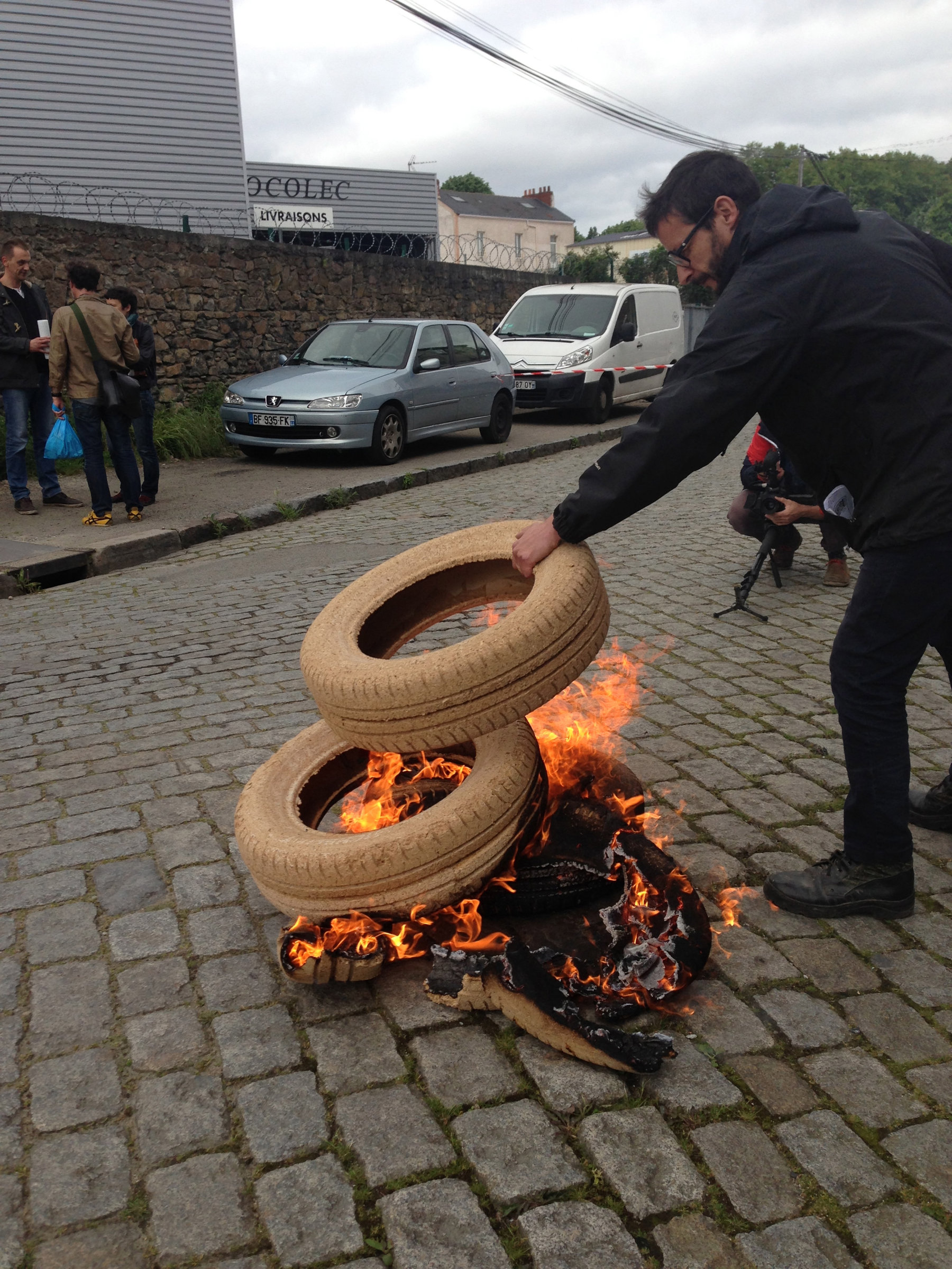 Artiste militant, Laurent Tixador reste dans le camp de la lutte contre les disharmonies sociales tout en déplorant un déséquilibre, triste corollaire des revendications. Un lapsus qui condamne la planète à tourner de travers : « S’il est essentiel de manifester, on préfère ne plus polluer en brûlant n’importe quoi ».