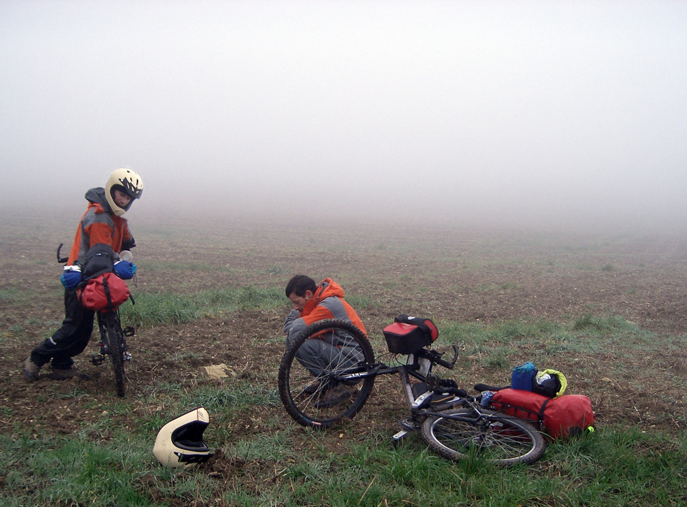 Partis de Carquefou, ils rallièrent Hérouville-Saint-Clair puis Verdun avec pour projet de tracer un cercle sur la carte de France. De ce périple, ils rapportèrent une vidéo de douze minutes et une toile blanche sur laquelle sont inscrits les noms des villes traversées. La vidéo montre les deux artistes durant leurs pérégrinations : le matin s’extrayant de leur tente, sur la route, sous la pluie, mangeant des chips dans un cimetière, sur une plage, doublés par des camions, et enfin, assis au bord de la route, non loin d’un panneau indiquant Verdun. Le montage des images n’est pas narratif : aucune voix off ne vient décrire l’action, les deux protagonistes échangent parfois quelques mots, sans plus.