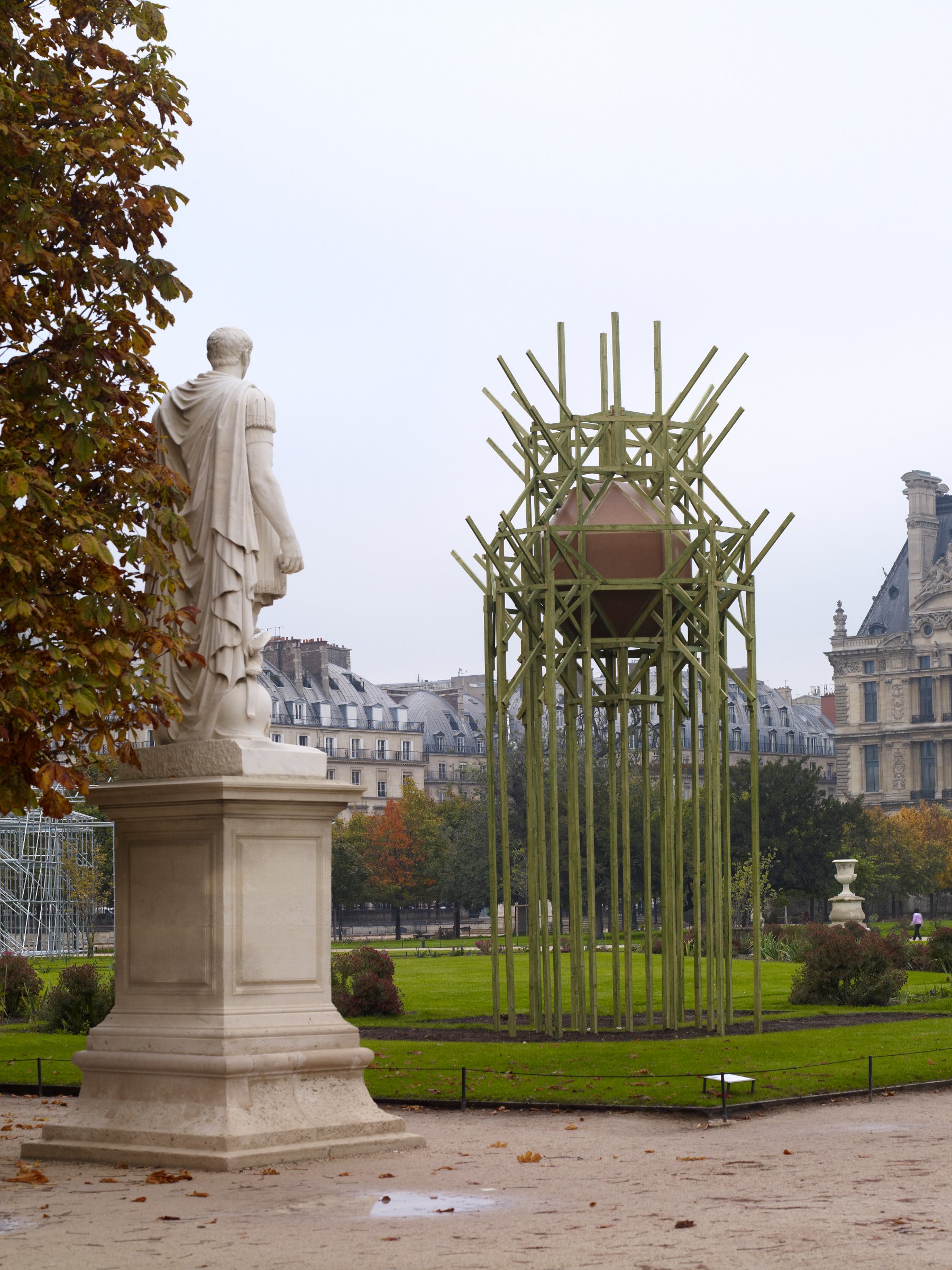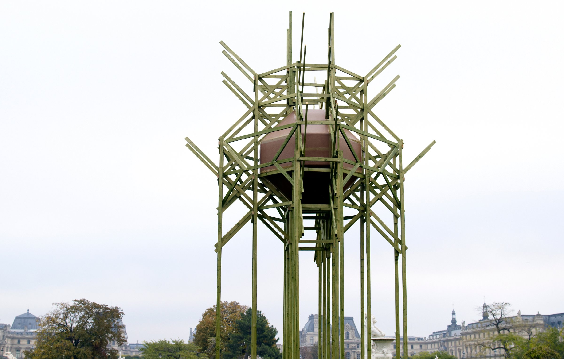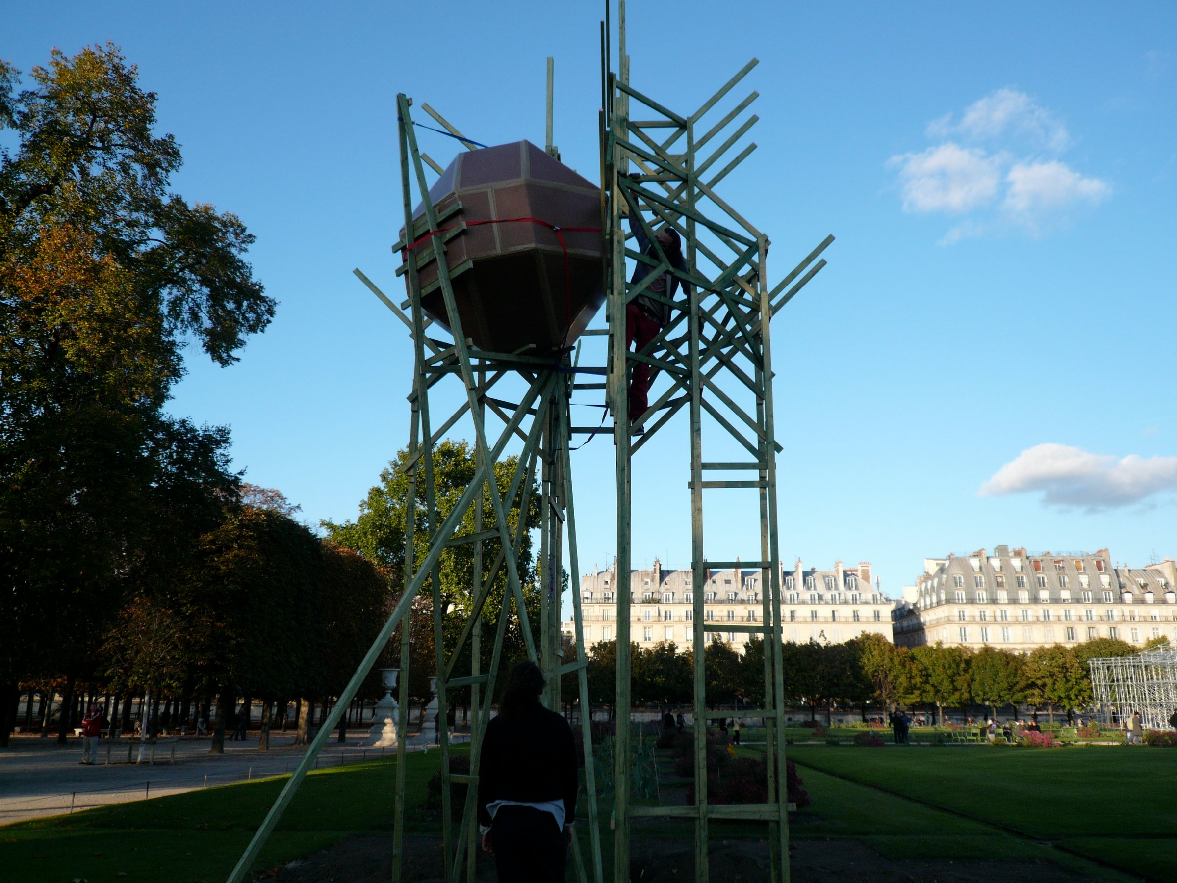 En habitant cet espace le temps de la foire internationale de l’art contemporain de Paris 2009, Laurent Tixador s’offre un refuge à la frénésie ambiante. À l’abri dans son nid, il est le baron perché à l’écoute de la rumeur du monde.