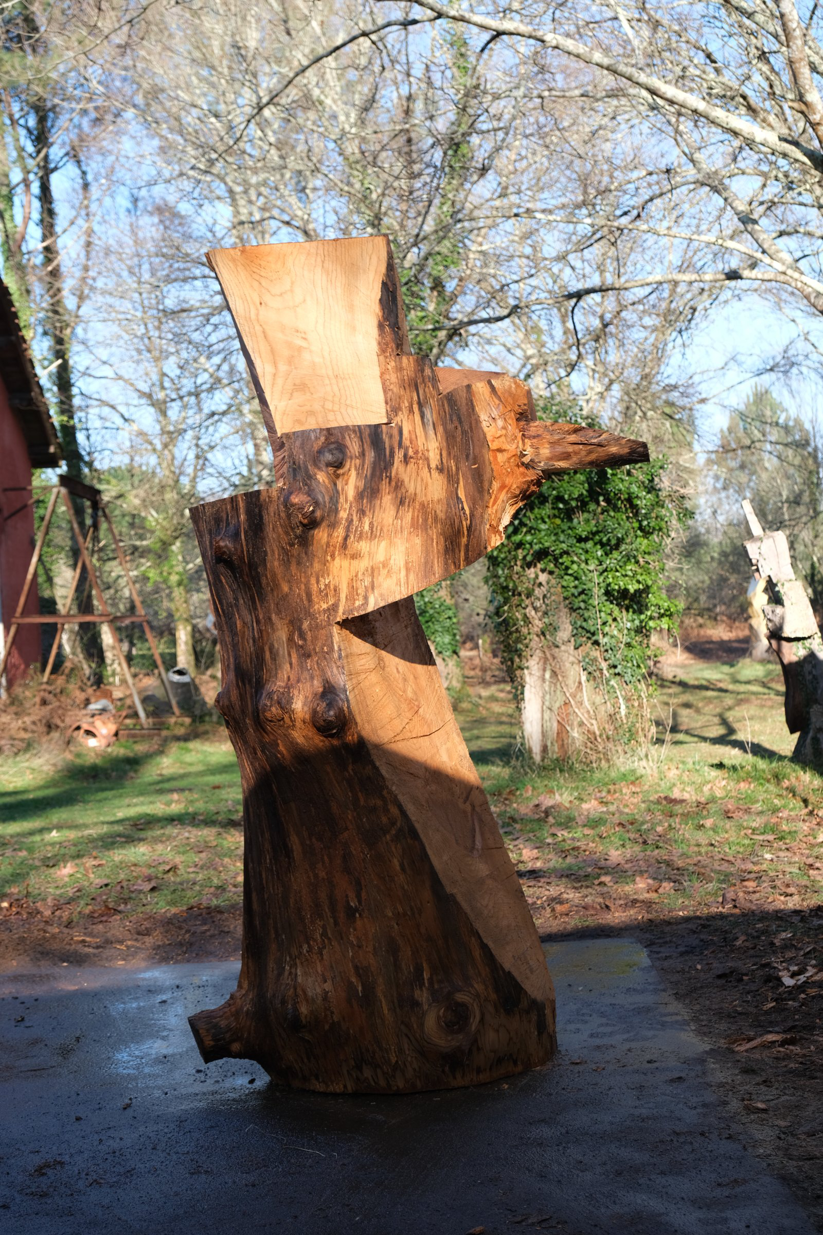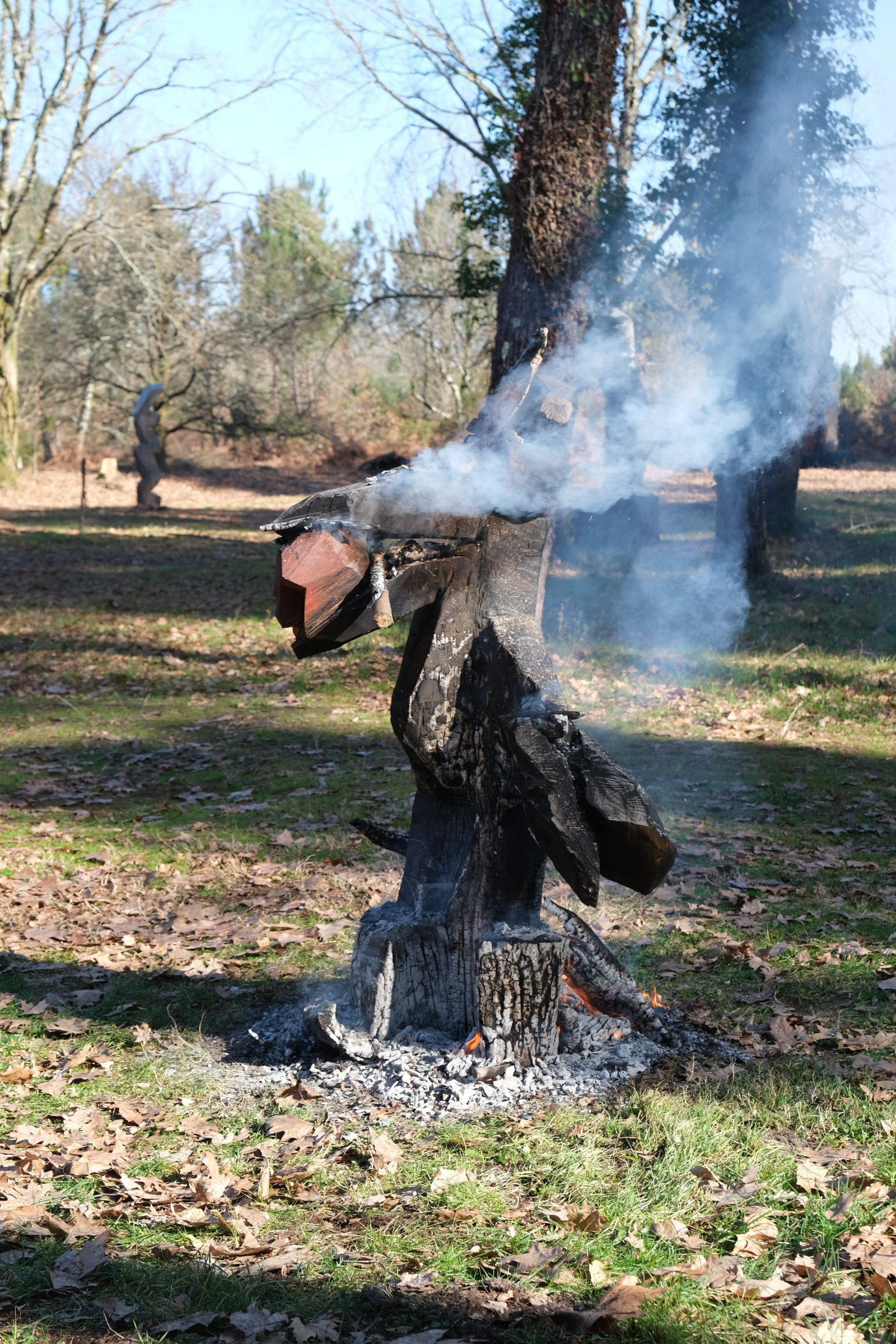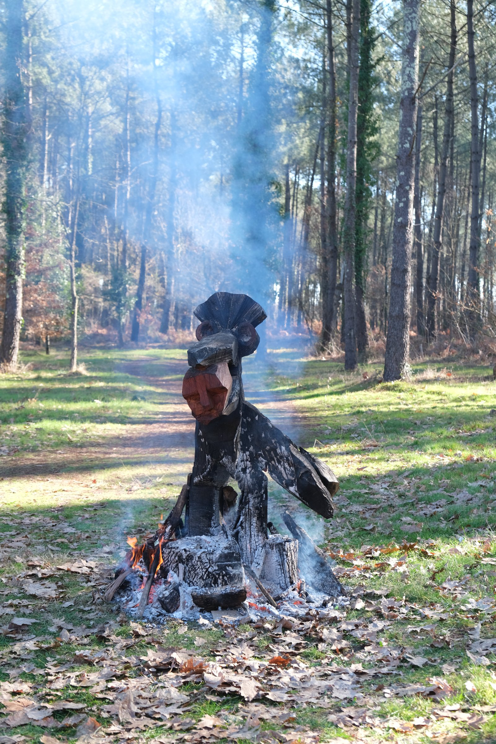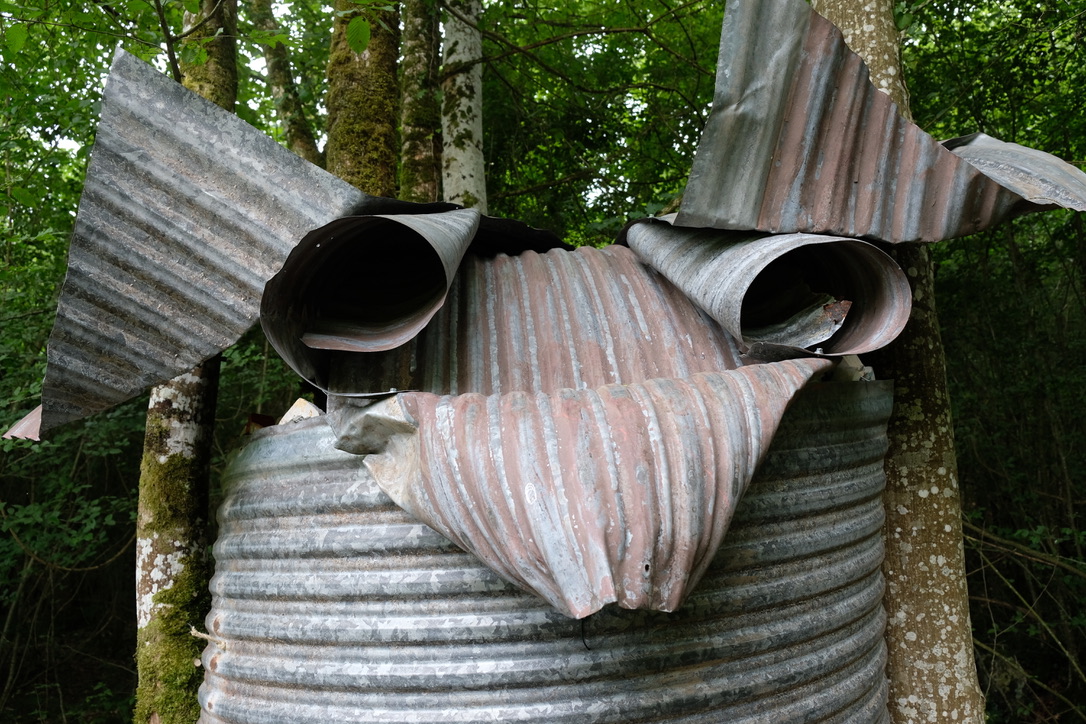 Christophe Doucet partage un ensemble de 15 masques en bois de frêne sculptés et peints aux contours animaliers et anthropomorphes. Au sein d’un petit abris, chaque promeneurse est invitée à s’en servir de façon ludique, à se laisser animer un instant par l’esprit d’un renard, d’un oiseau ou d’un personnage facétieux. En utilisant toute une palette de savoir-faire traditionnels, il réactive avec force le monde imaginaire ancré en chacun : porter un masque, jouer à être un autre, à faire semblant...