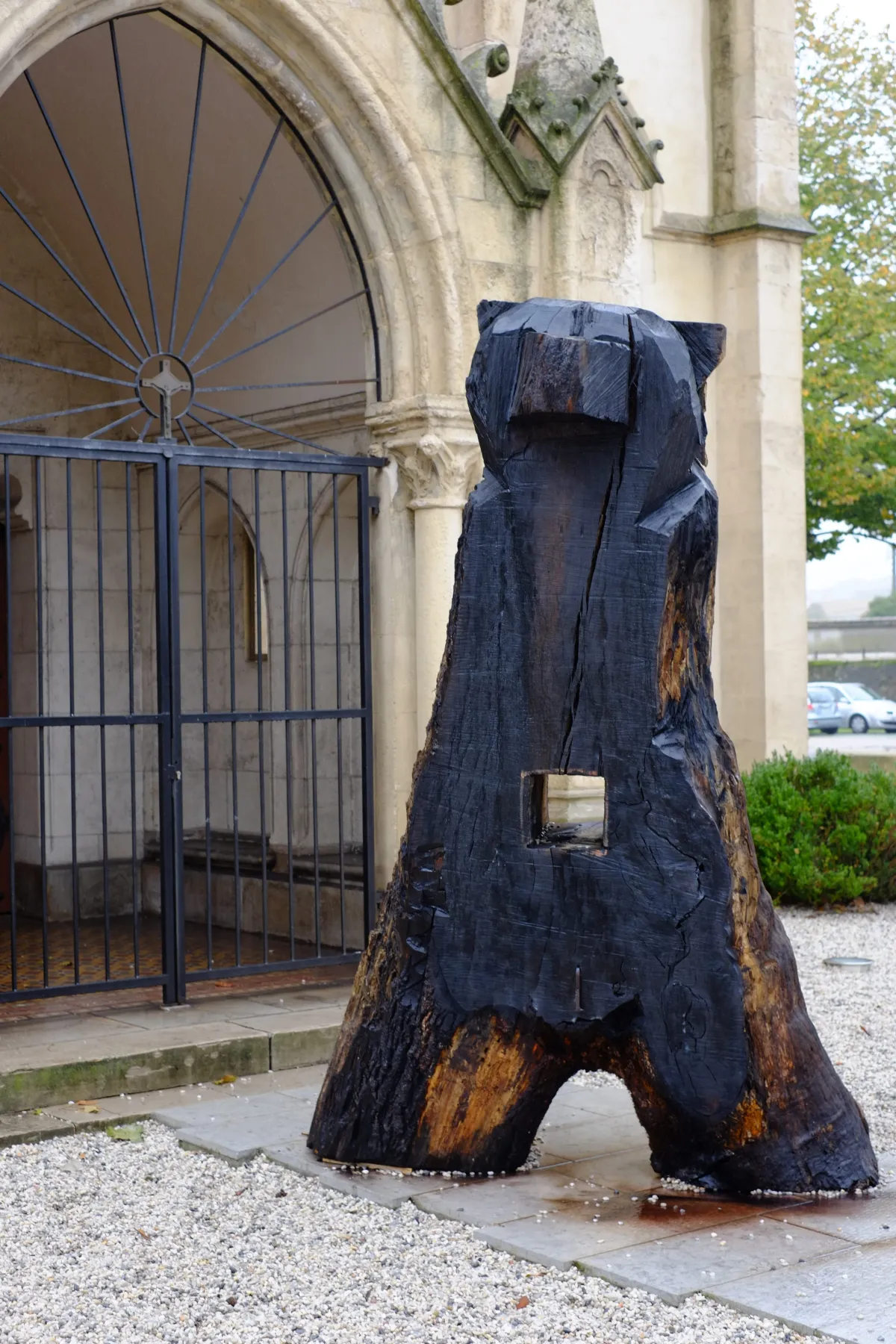 Chêne, 285 x 160 x 100 cm Exposition Topographic 3. Le mystère des forêts, Église des Forges, Tarnos, 2013 Commissariat : François Lousteau / La Maison
