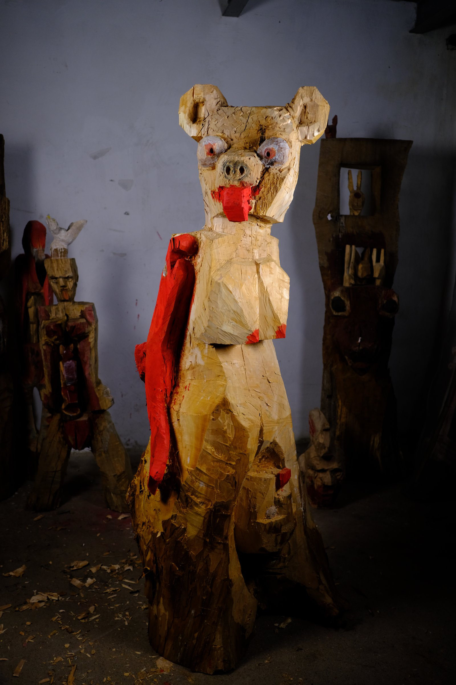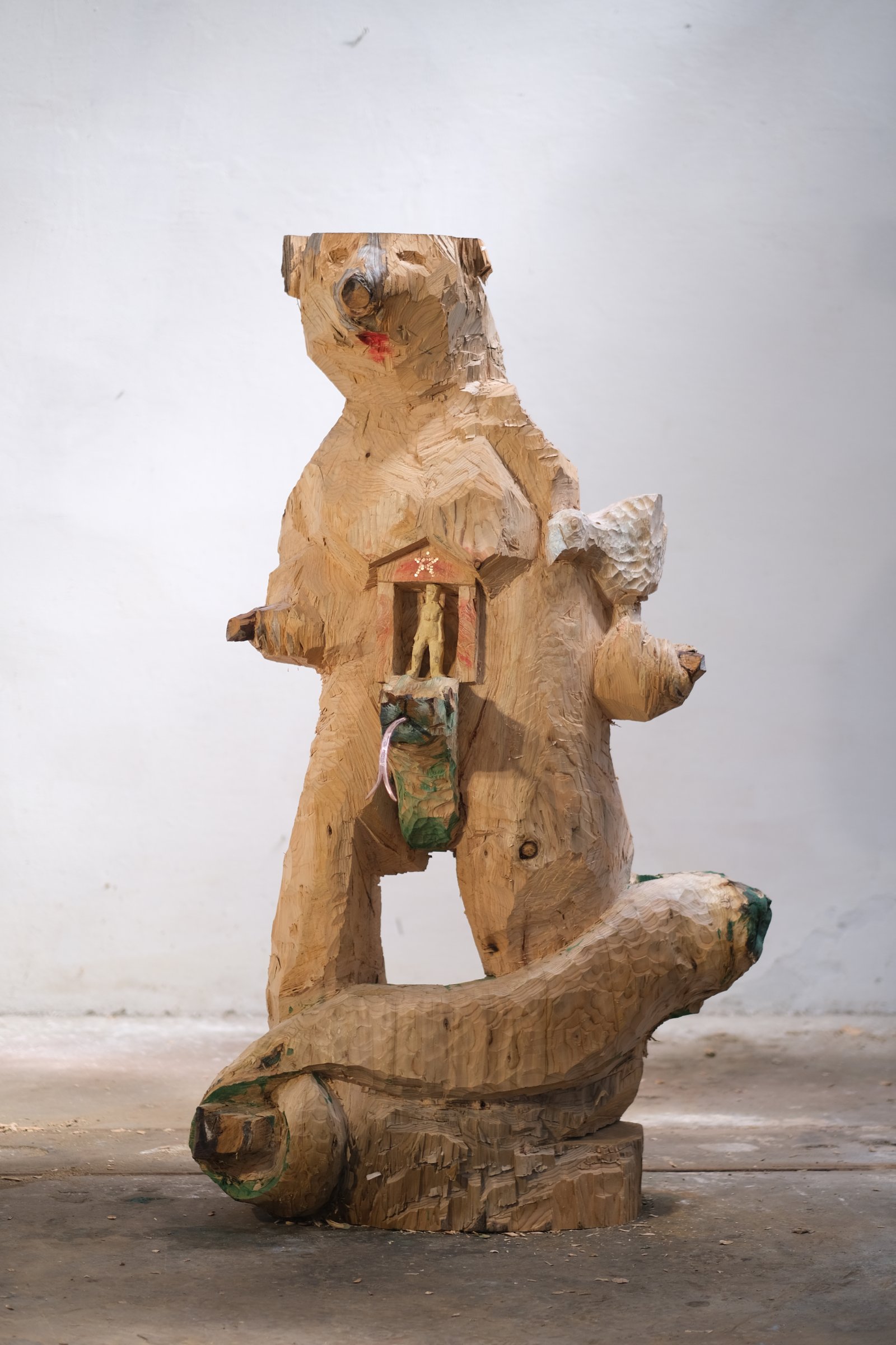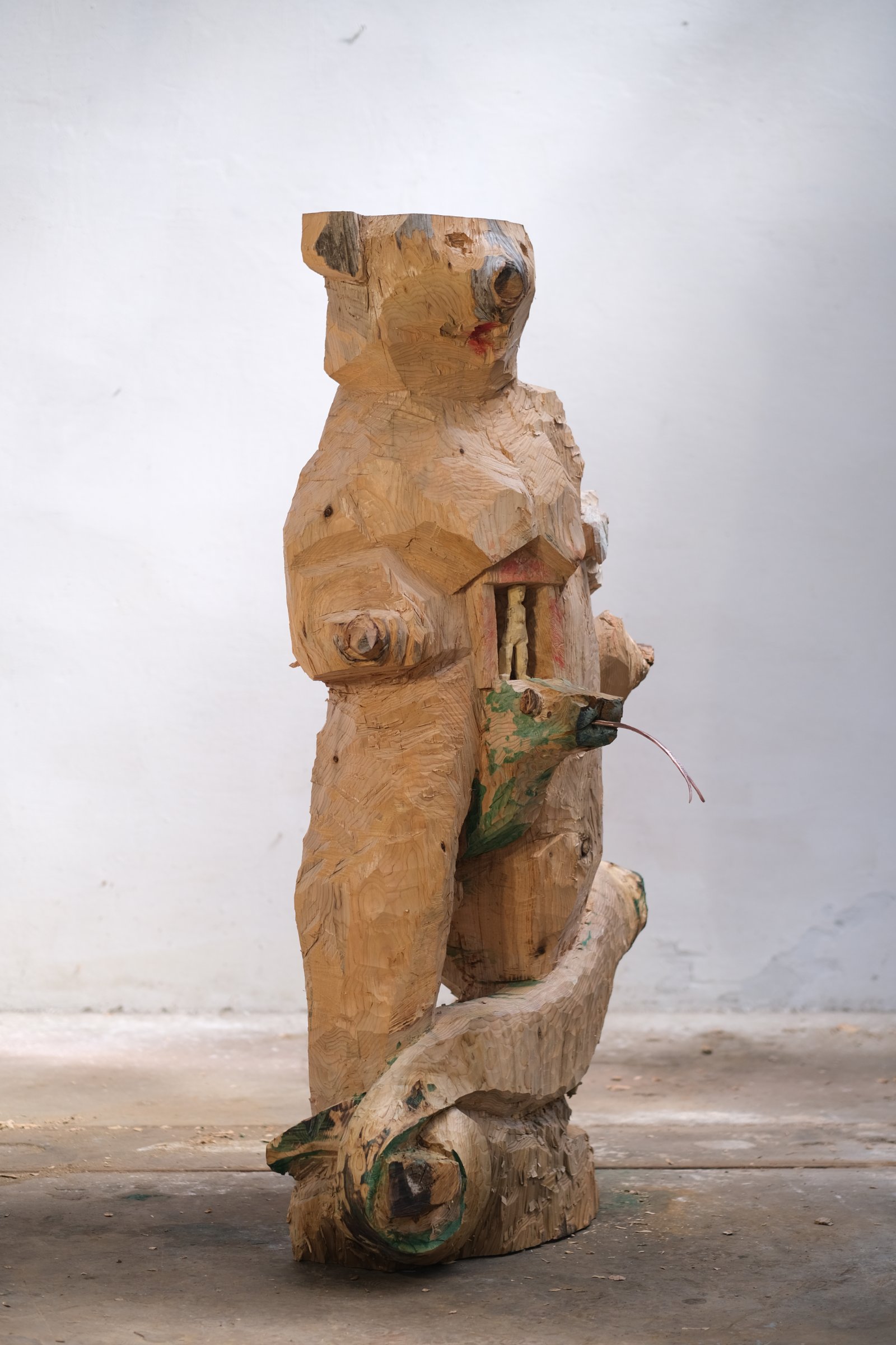 Ourse, serpent, oiseau, 2022 Cèdre, cuivre, 200 x 130 x 180 cm