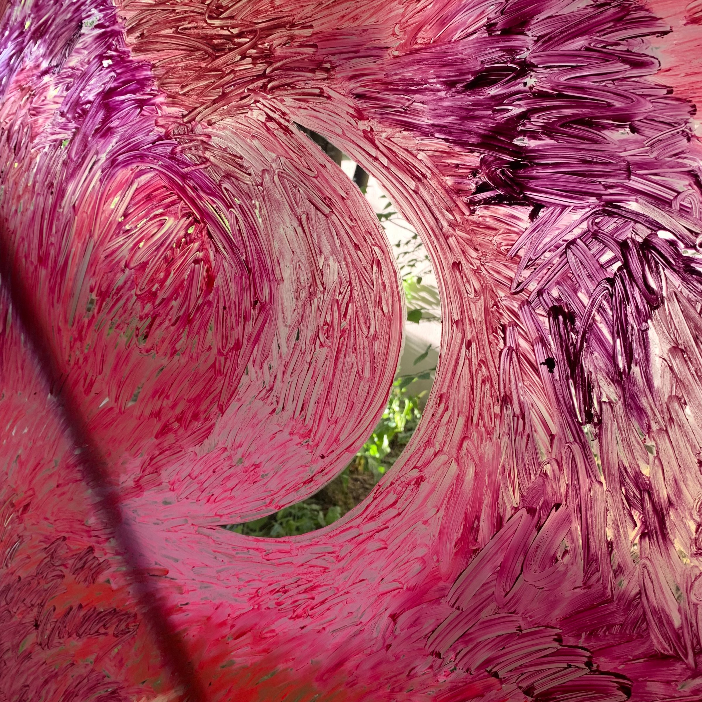 Tatiana Defraine peint sur les vitres du jardin de longues femmes alanguies