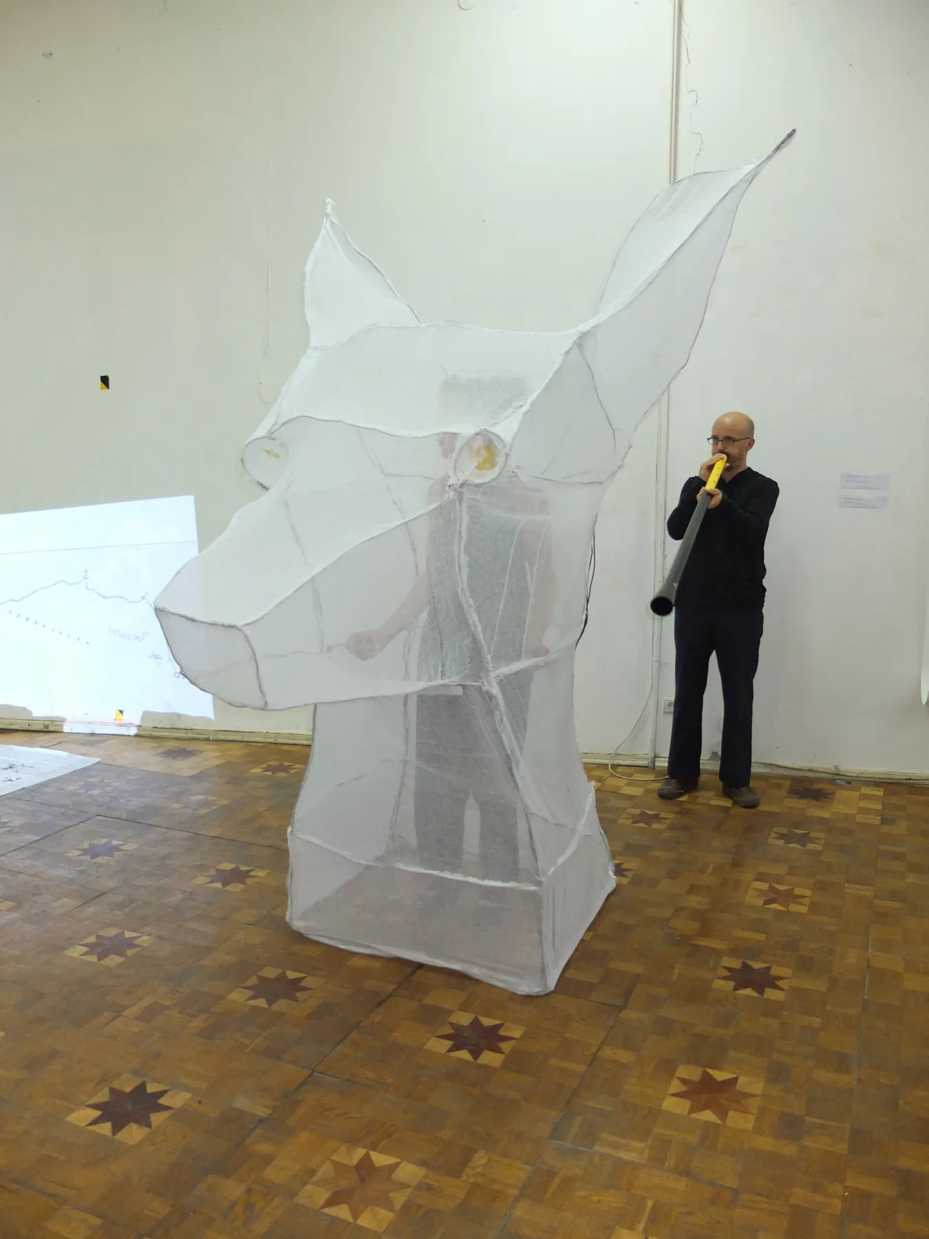 Performance et sculpture Avec Erica Batdorf (chanteuse), Christian Bestle (musicien), Channa Boon (danseuse) Sculpture : fer et gaze de coton, 3 mètres (hauteur) Réalisé dans le cadre de la résidence Artisterium, Tbilissi (Géorgie), 2012 Exposition Nine Dragon Heads, Nomadic Party, Georgian National Museum, 2012 Commissariat : Park Byoung Uk