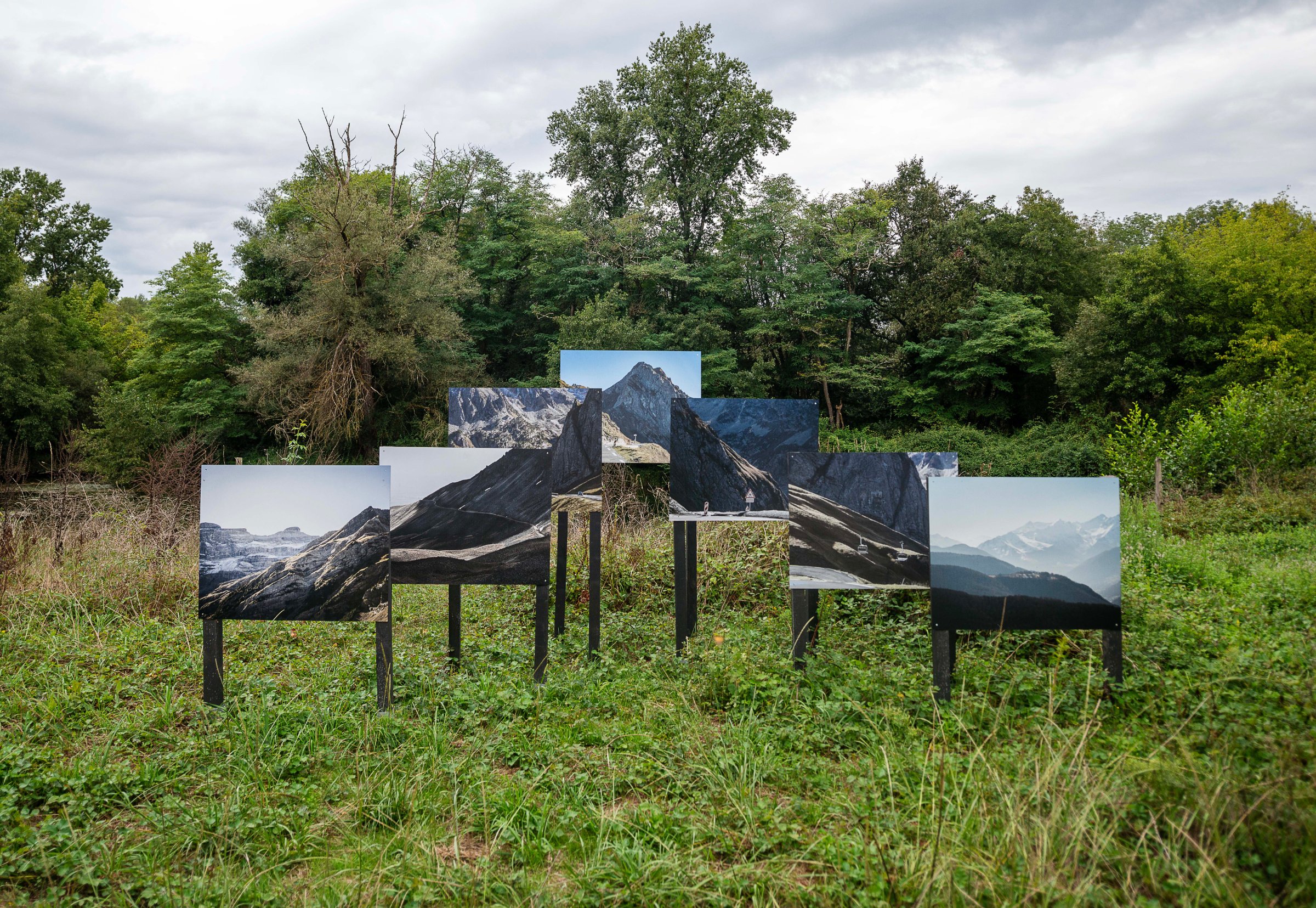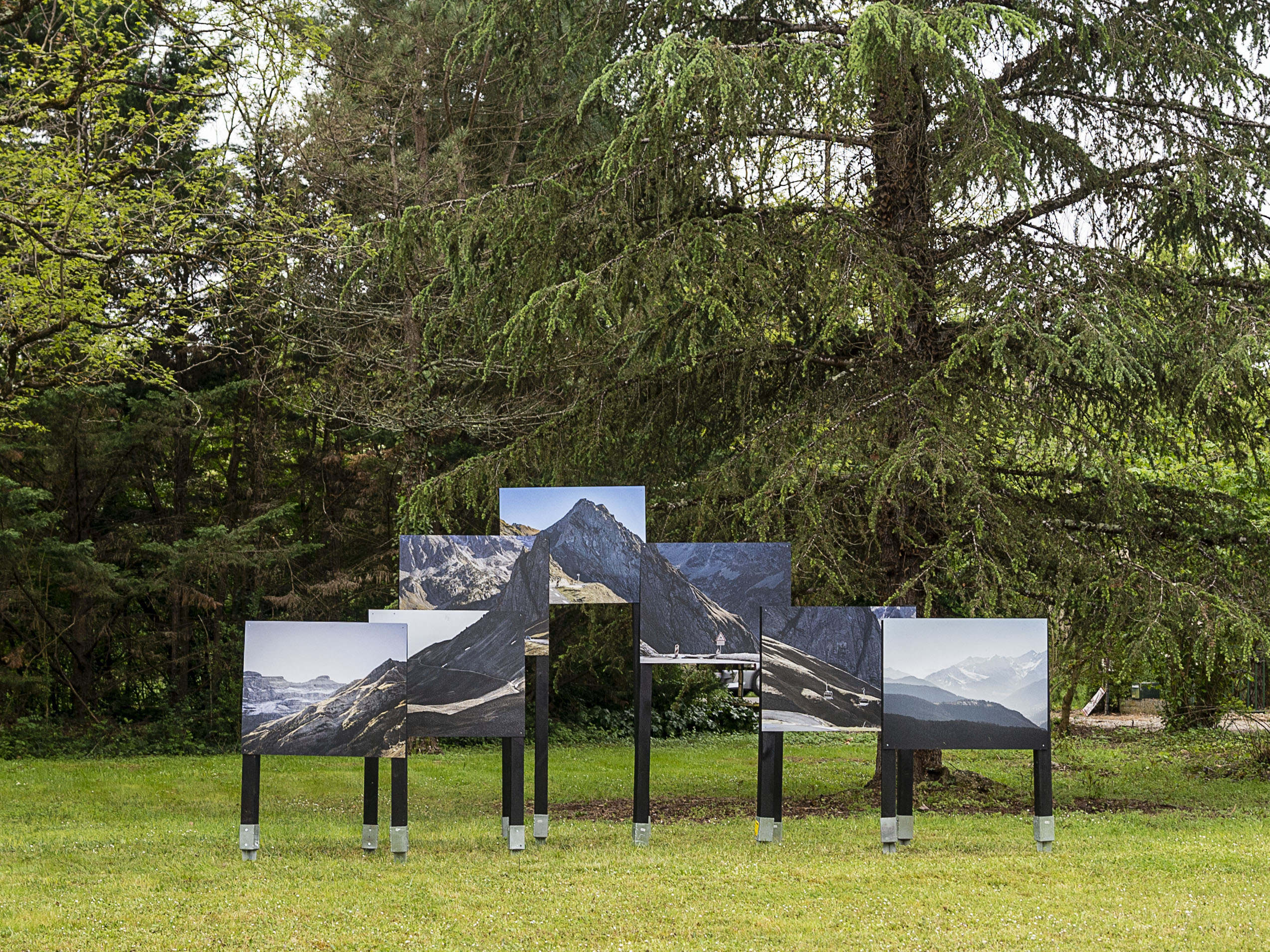 Installation de 3 ensembles, tirages sur dibond, poteaux en bois, 650 x 240 cm, 240 x 240 cm et 240 x 240 cm