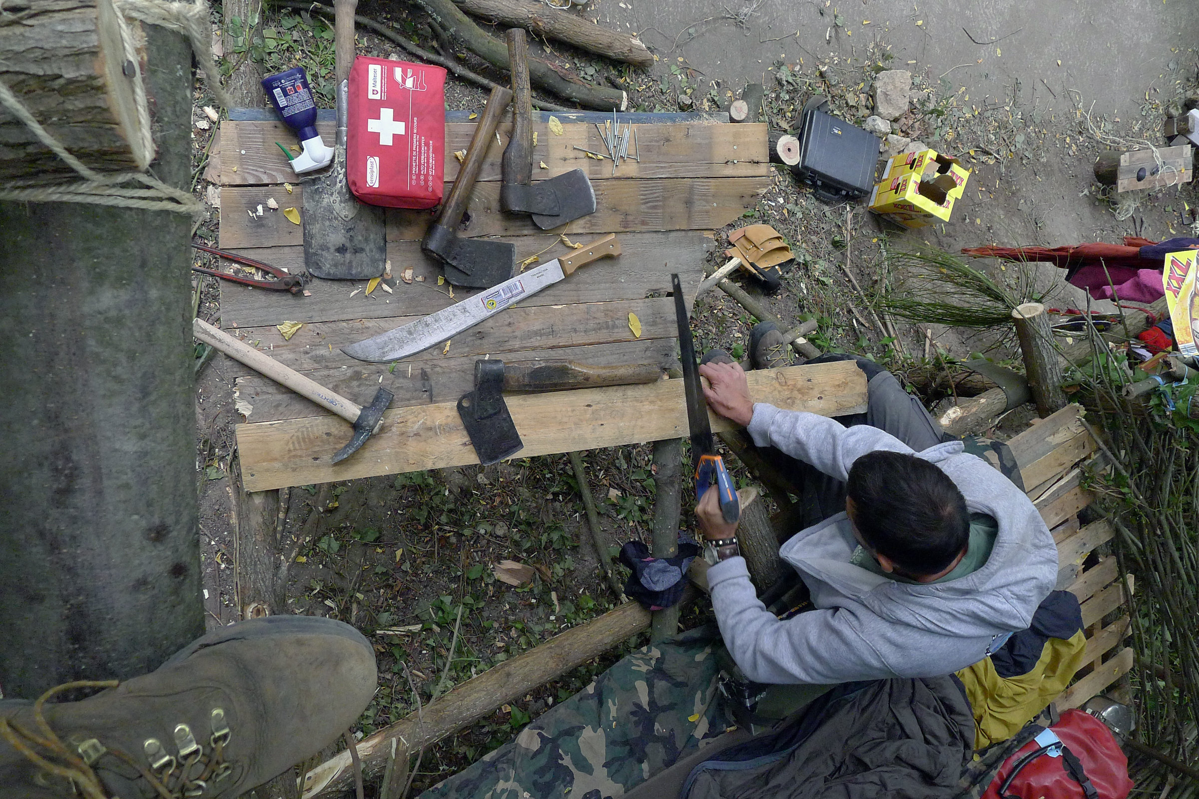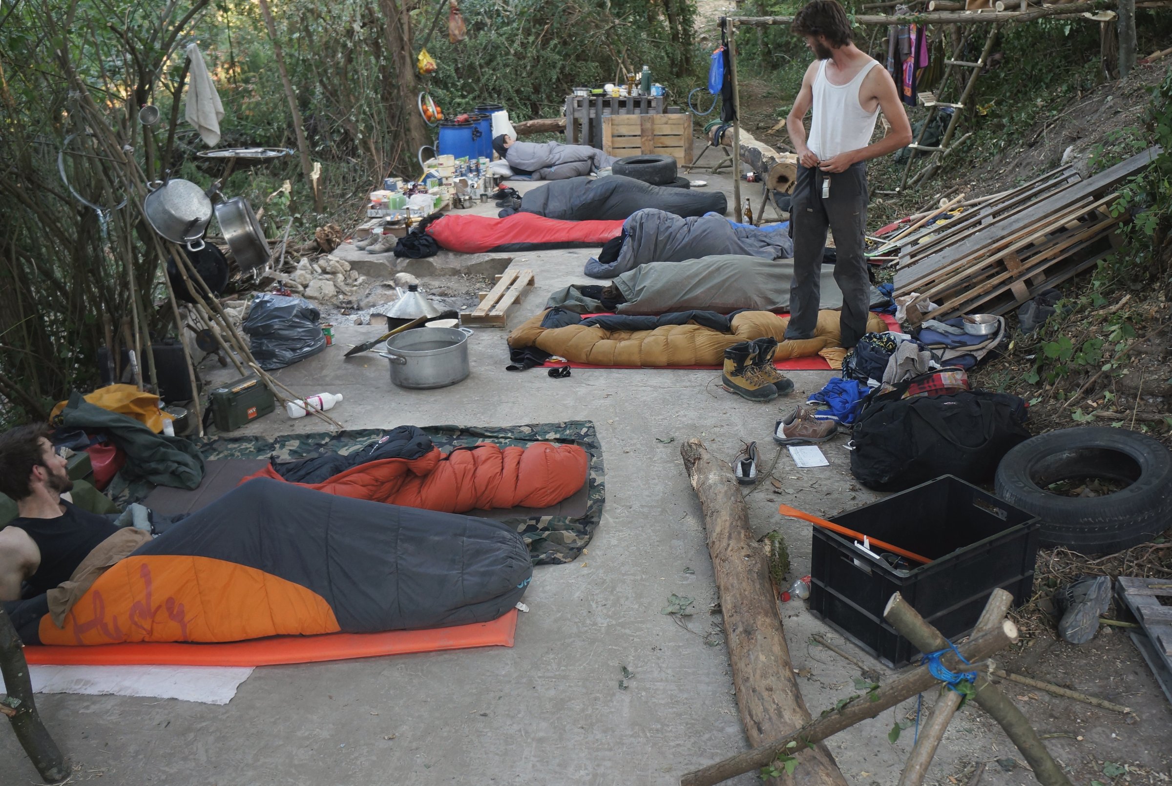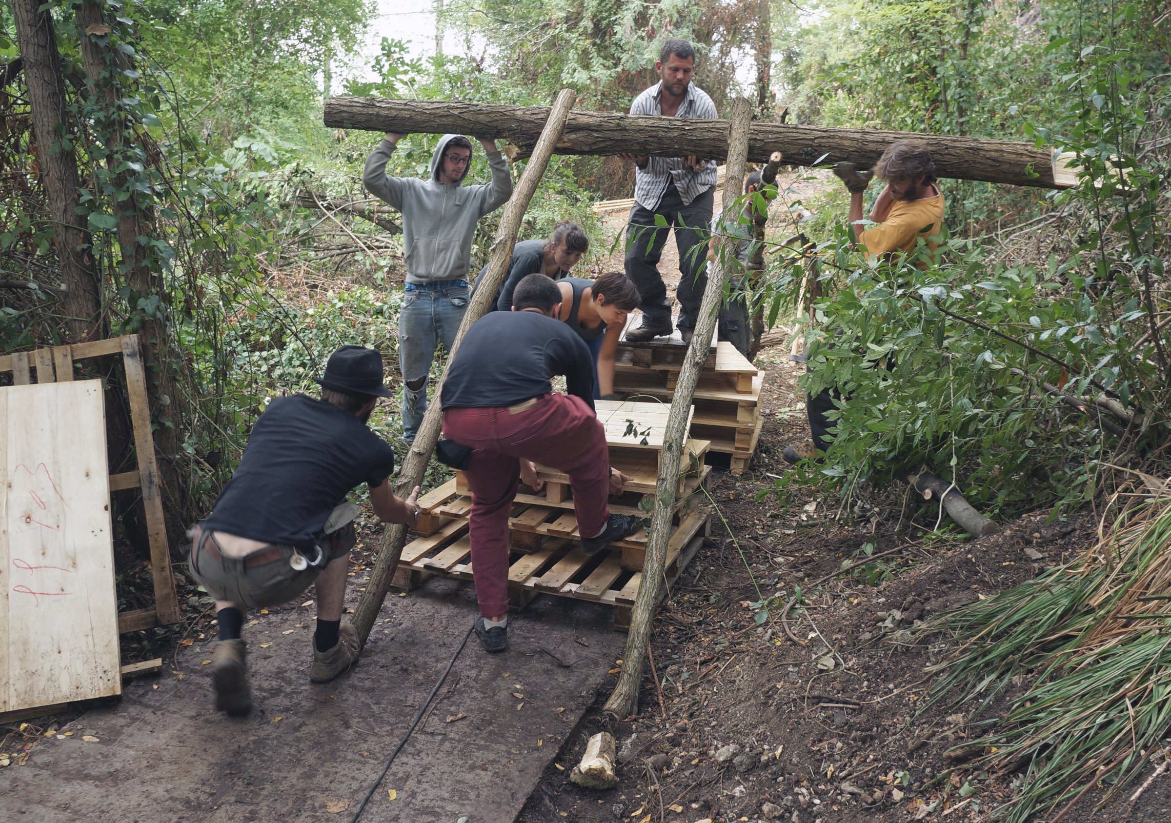 Les premiers jours de l’installation, l’équipe dort à la belle étoile, puis travaille à rendre le site habitable en veillant bien à ce que toutes les constructions soient réversibles. Cette situation, si on sait en saisir toutes les propositions, crée à chaque fois un habitat parfaitement adapté à son lieu d’accueil. Il peut ensuite évoluer grâce à la découverte de ressources supplémentaires qui n’étaient pas forcément visibles au premier abord. Ce processus apparaît comme une alternative à l’une des constantes à l’échelle de la planète : les humains forgent l’environnement selon leurs besoins plus qu’ils ne s’y adaptent.