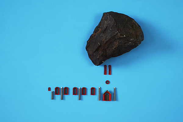 Deux vues de l’œuvre, au sein de l’exposition Un joli petit village (2016), Les Ateliers les Arques, résidence d’artistes