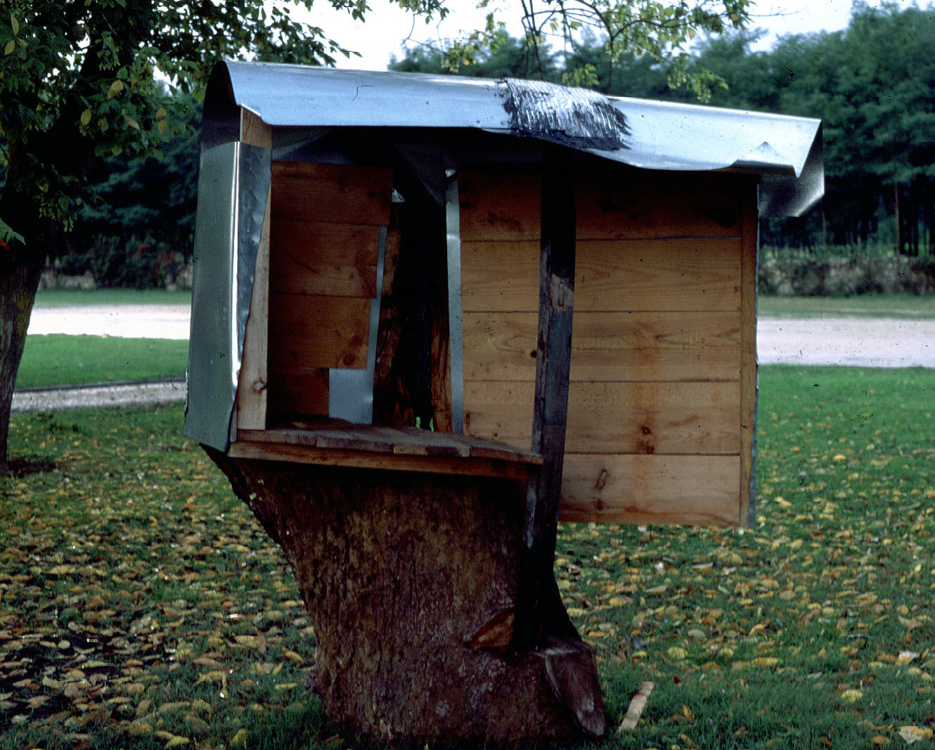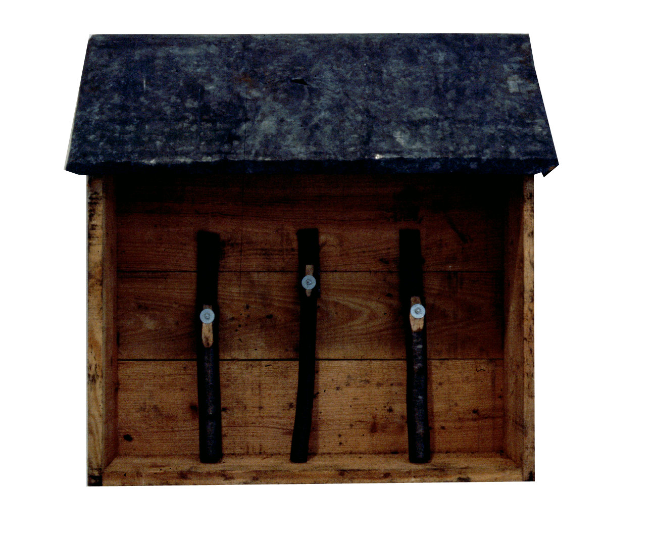 Cabane tête, 2000Platane, tôle et goudron, 60 x 40 x 30 cm -