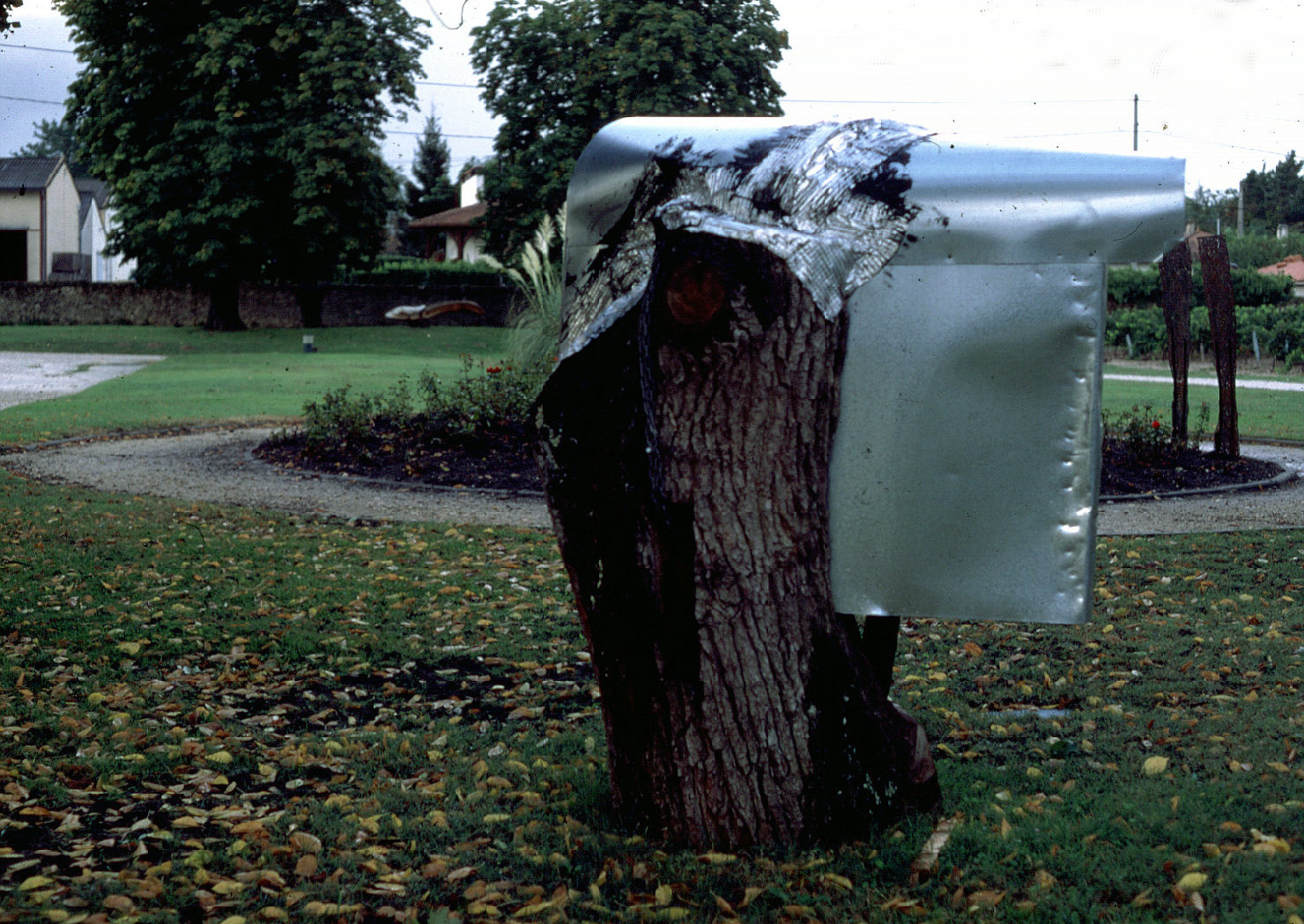 Platane, goudron, tôle, 160 x 110 x 50 cm