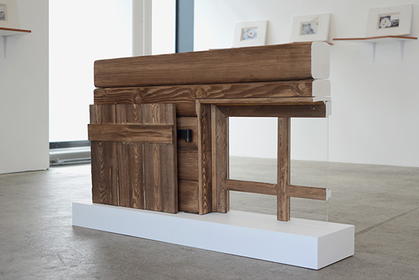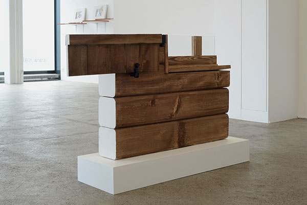 Bois, verre, acier, peinture synthétique, 130 x 73 x 21 cm