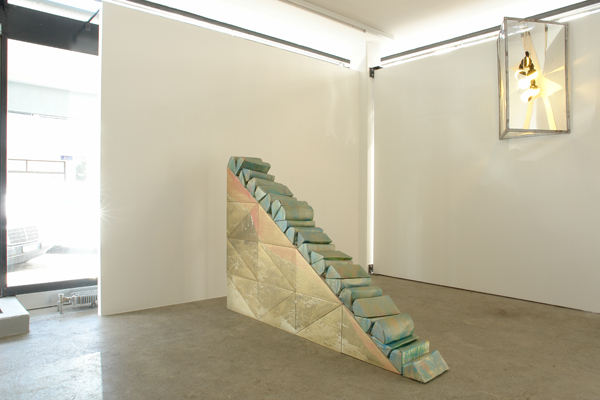 Bois, résine, acrylique sur toile, lingot d’étain, 206 x 28 x 136 cm