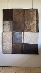 Deux techniques distinctes sont utilisées pour obtenir un effet « patchwork » : le pliage et l’assemblage au moyen de la couture. Suspendus et adossés – voire accrochés au mur, posés au sol ou à cheval entre sol et mur – ces objets sont mouvants, tant du point de vue de leur forme, de leur superficie que de leur positionnement dans l’espace.