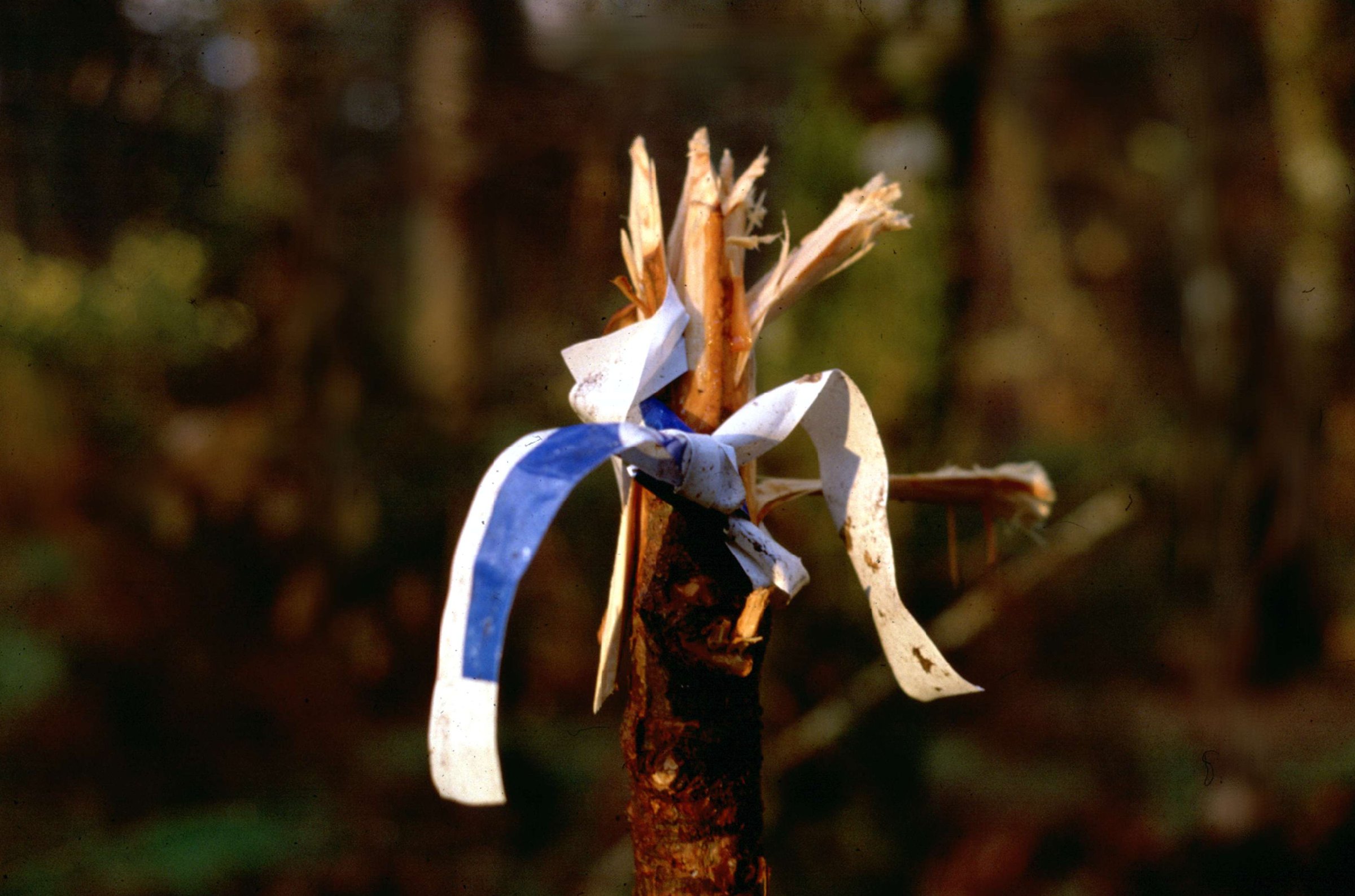 Les forestiers délimitent leur propriétés de marques et de bornes ; cette volonté de signaler le territoire et la précarité des moyens employés rapprochent ces signes fonctionnels de l’écriture archétypale.