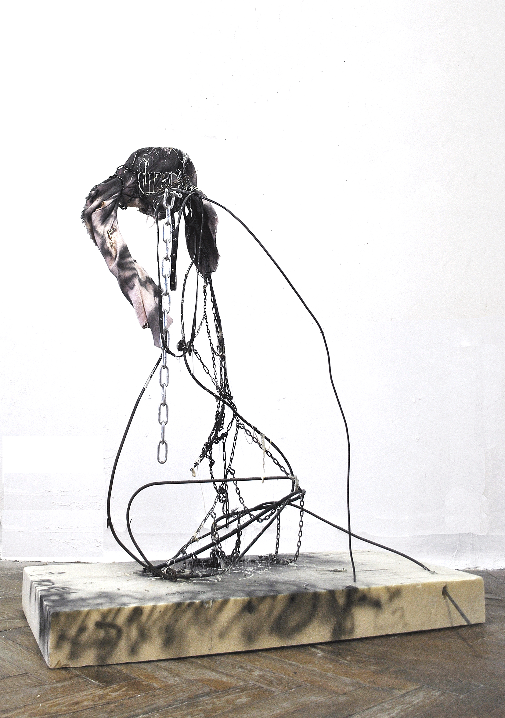 Résine, polystyrène extrudé, métal, cuir, 120 x 60 x 135 cm