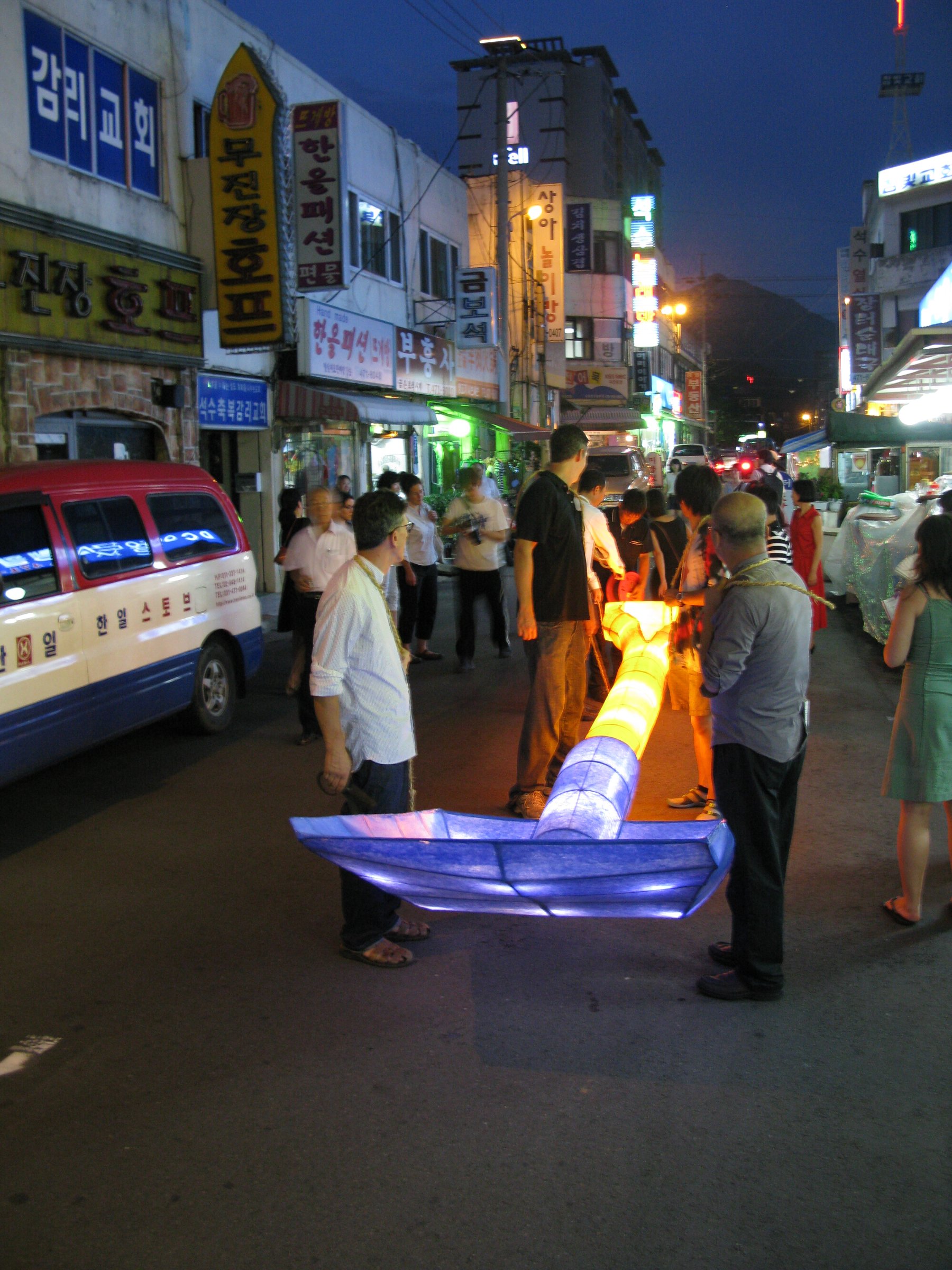 Sap, est un signe-outil qui utilise les techniques traditionnelles coréennes. La fabrication a été suivie d’une procession-performance dans le marché de Seoksu.